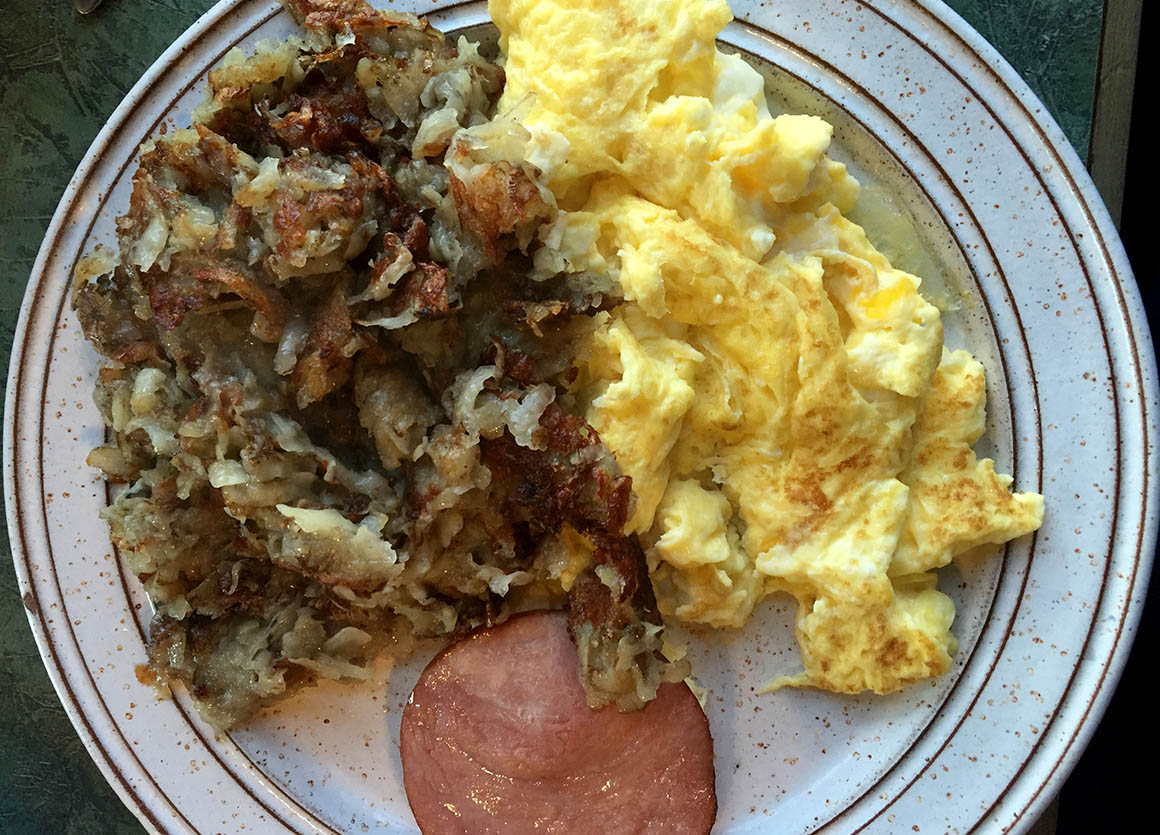 Der Tag beginnt, und der Frühstücksraum im Hotel ist noch verschlafen – bis auf Brooke, die schon da ist und gekonnt das Kaminfeuer jongliert. Ich entscheide mich für leckere Hashbrowns und knusprigen Speck, während Stefan sich für ein Rührei entscheidet. Während Brooke in der Küche fleißig Kartoffeln für mein Frühstück reibt, frage ich mich heimlich, wie mein Muskelkater und ich später die Treppe hinunterkommen werden. Eine echte Herausforderung, aber hey, wir werden sehen!