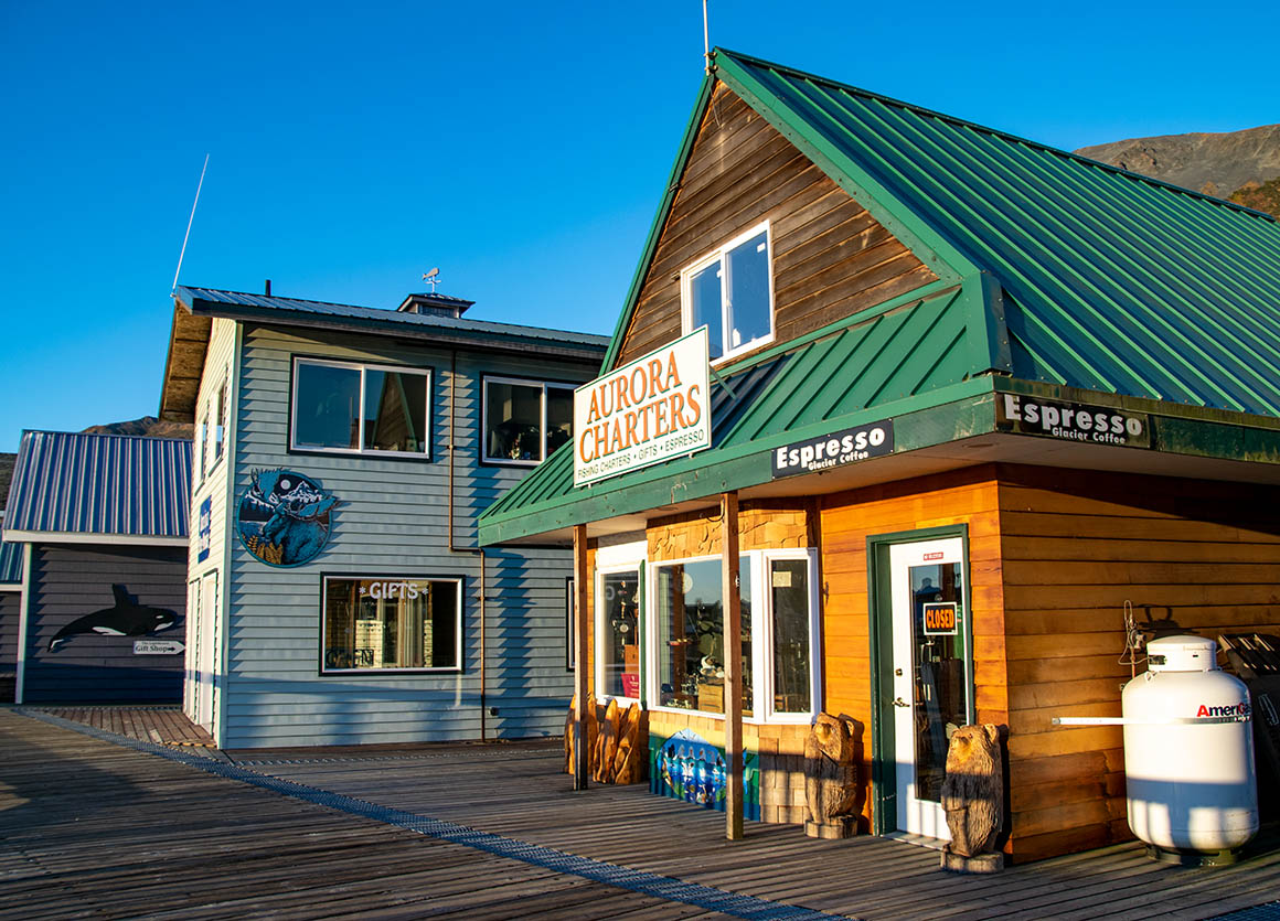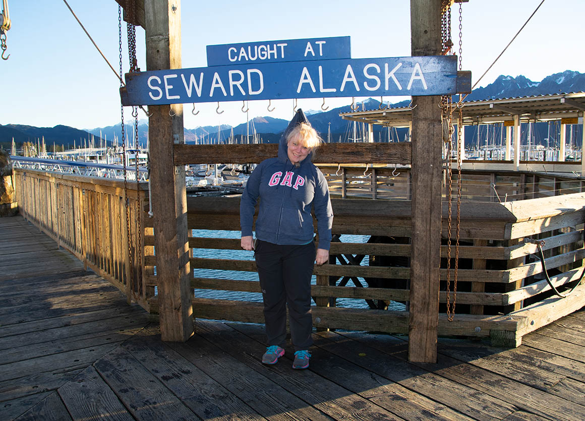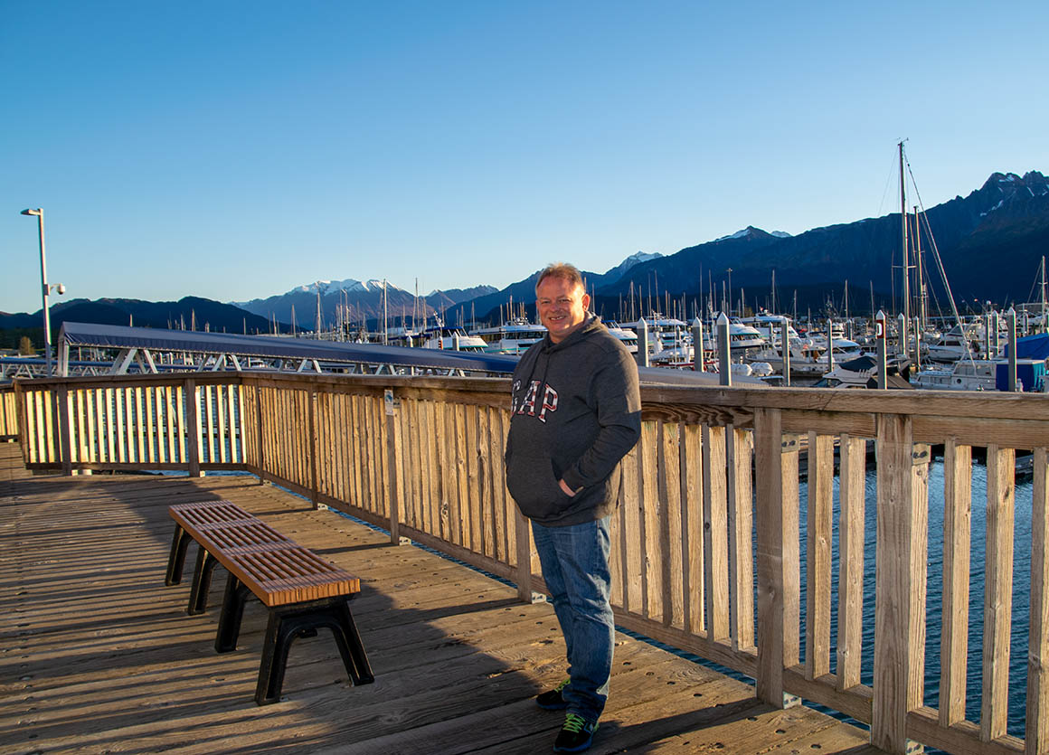 Bevor wir Seward endgültig den Rücken kehren, gönnen wir uns einen kurzen Abstecher zum Hafen. Auch wenn die meisten Läden und Restaurants noch im Winterschlaf verweilen, schlendern wir entlang des Holzstegs und bewundern die verschiedenen Boote. Die Sonne taucht den Hafen in ein goldenes Licht – einfach herrlich!
