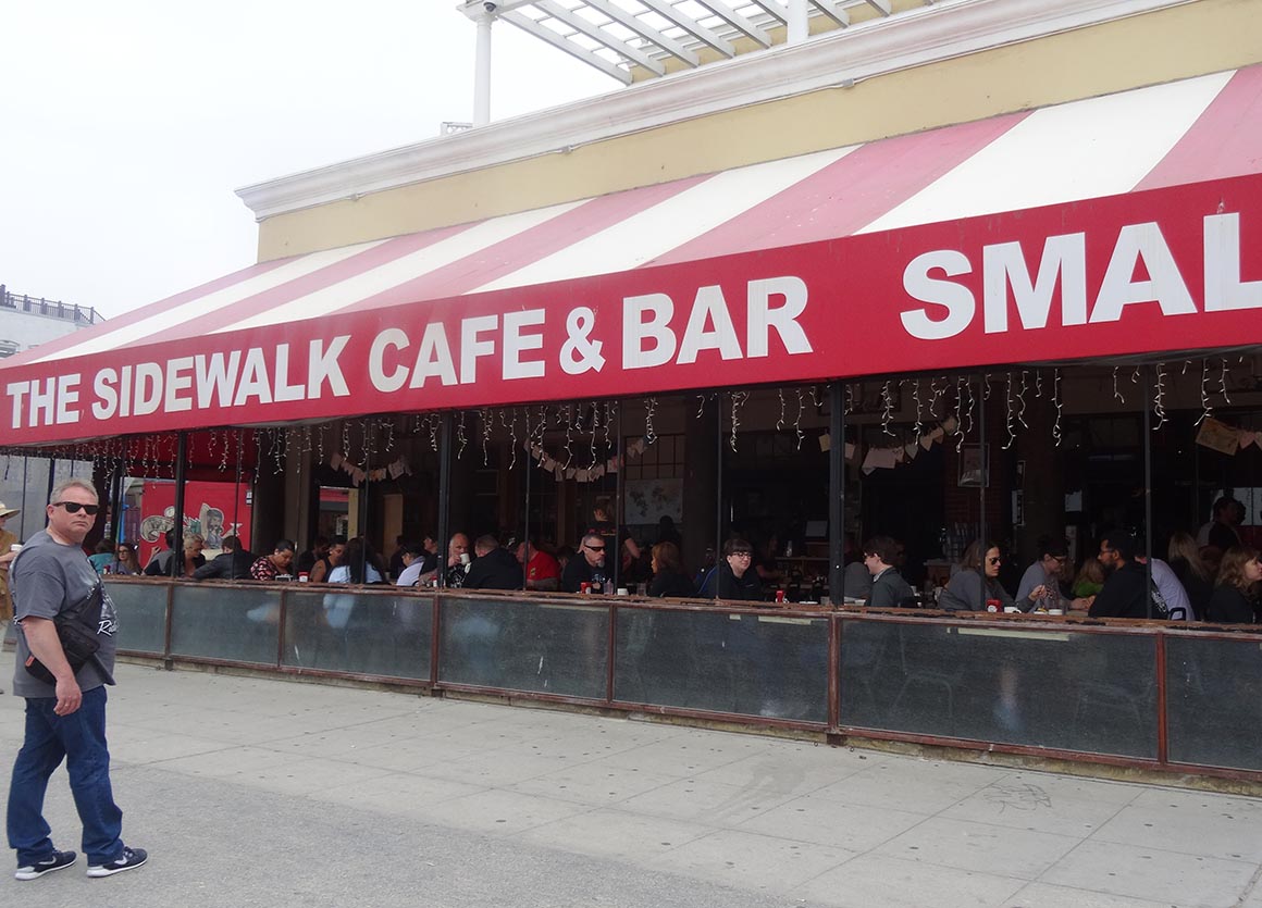Um diese Uhrzeit ist es hier noch ziemlich ruhig. Das Sidewalk Cafe hat bereits geöffnet, aber es sind noch nicht viele Leute hier. Wir schnappen uns einen Platz an der offenen Seite des Cafés und können so das bunte Treiben draußen beobachten.