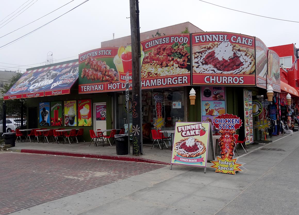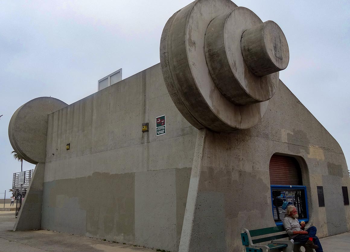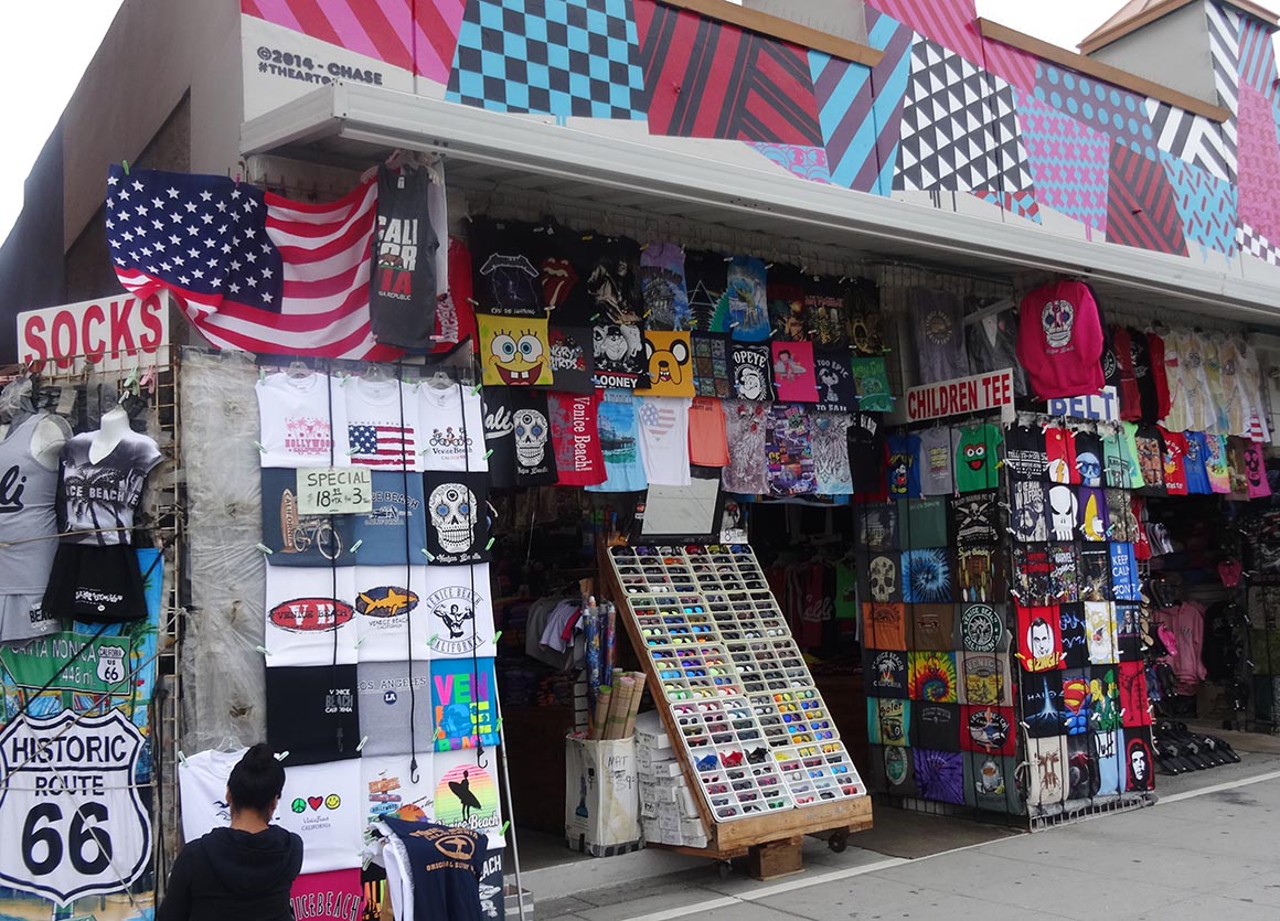 Auf unserem Spaziergang kommen wir an Muscle Beach vorbei, der wohl als die berühmteste Outdoor-Hanteltrainingsanlage der Welt gilt. In den 80ern haben hier Größen wie Arnold Schwarzenegger und Ralf Möller trainiert – doch heute wirkt alles ziemlich heruntergekommen und verlassen. Das Einzige, was hier offensichtlich gut funktioniert, sind die Stände mit billigen T-Shirts und Sonnenbrillen. 🏋️♂️🕶️
