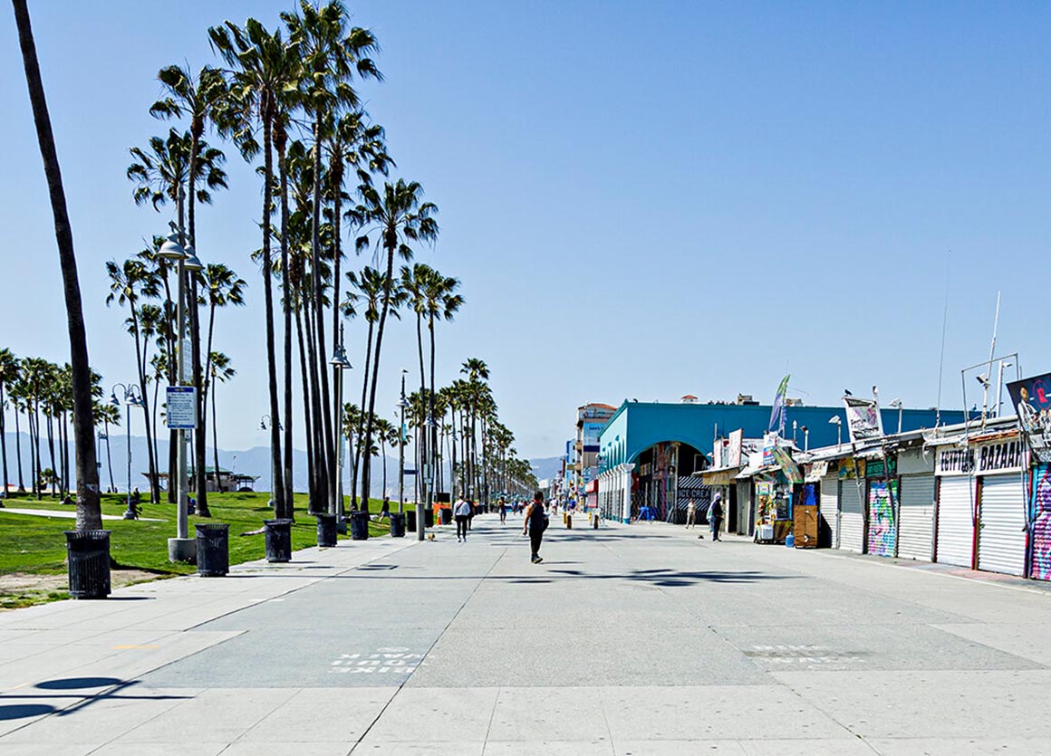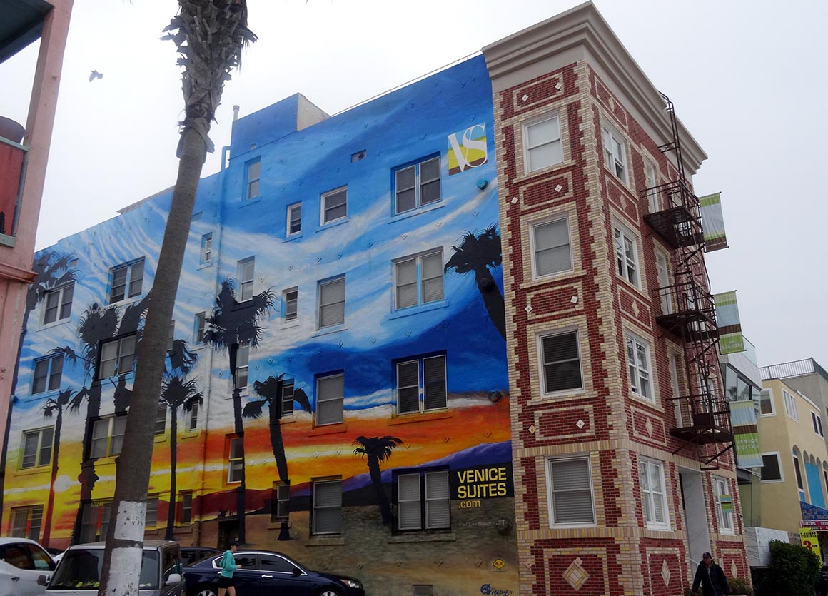 Aber hey, Kopf hoch! Wir haben uns gesagt, dass wir die verbleibende Zeit bis zur Abgabe des Mietwagens um 13 Uhr sinnvoll nutzen wollen. Also machen wir uns auf den Weg nach Venice Beach. 🚗 Und wisst ihr was? Das Glück ist auf unserer Seite, denn in den Seitenstraßen gibt es um diese Uhrzeit noch kostenlose Parkplätze!