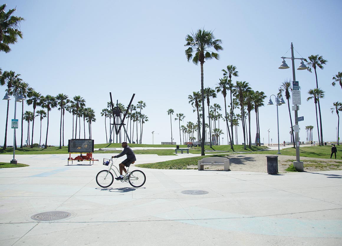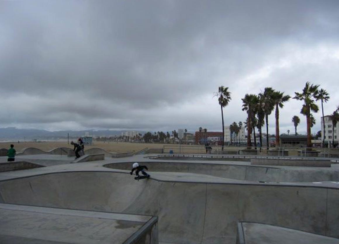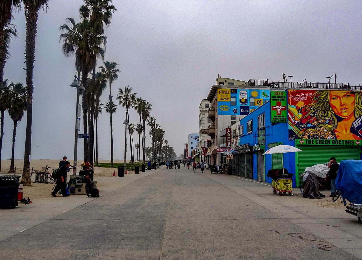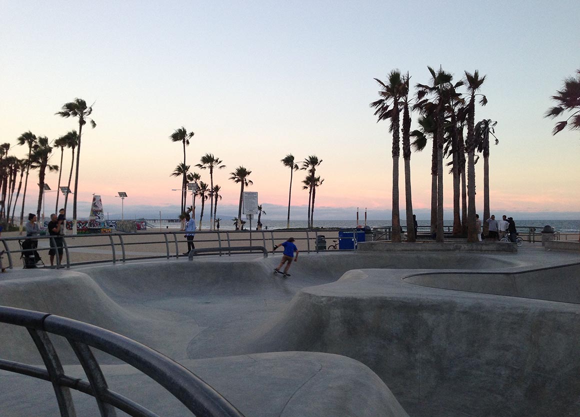 Entlang des Weges begegnen uns die Vielfalt von Venice Beach: Obdachlose, Freaks, Hippies, Surfer, Skateboarder, Inline-Skater, Kyte-Skater und klassische Rollschuhfahrer. Glücklicherweise hat sich auch der Dunst ein wenig verzogen, und wir können den Himmel und das Meer in ihrer vollen Pracht erblicken.