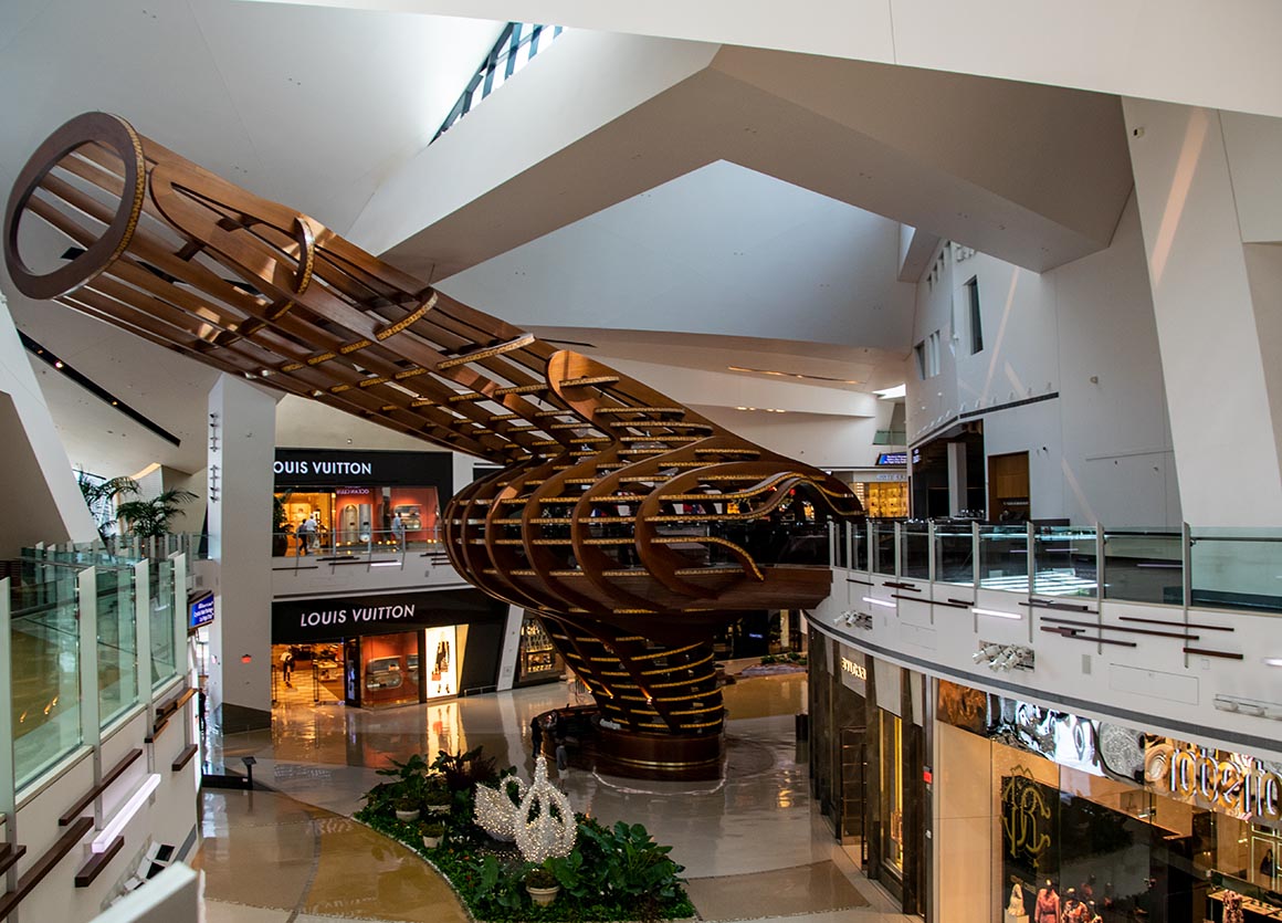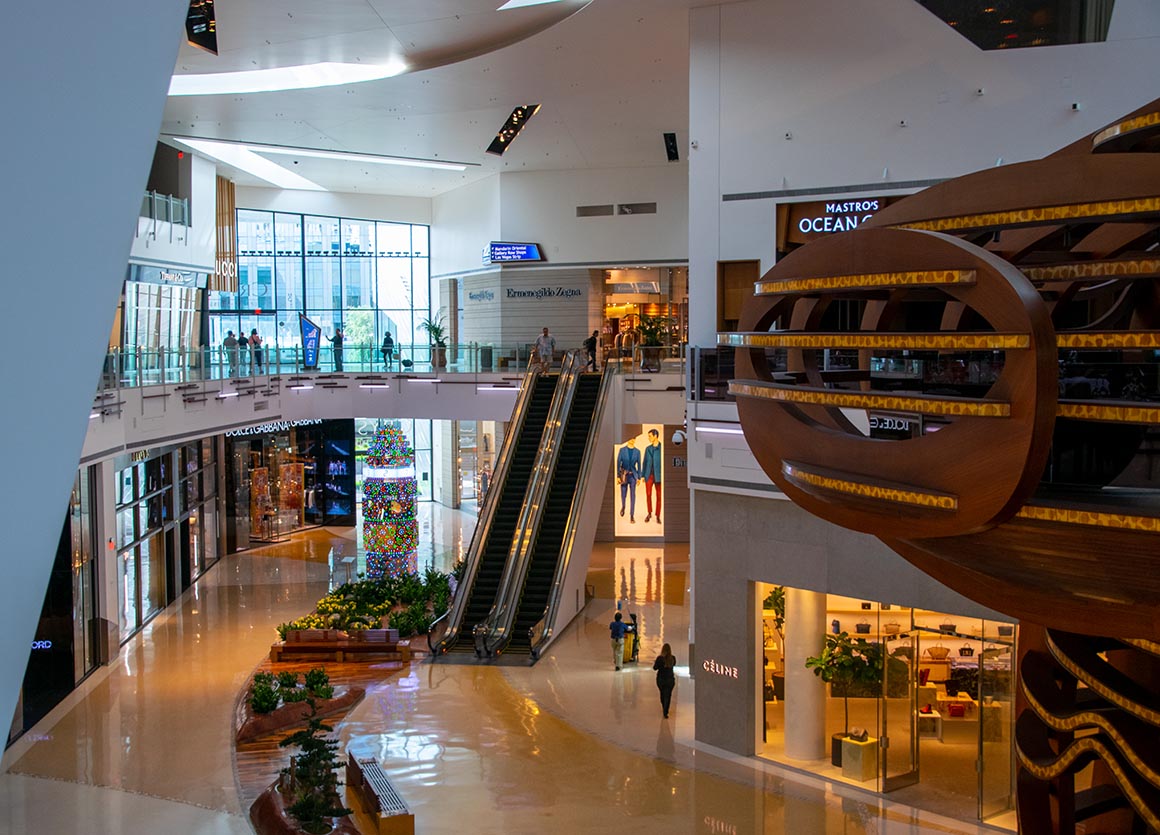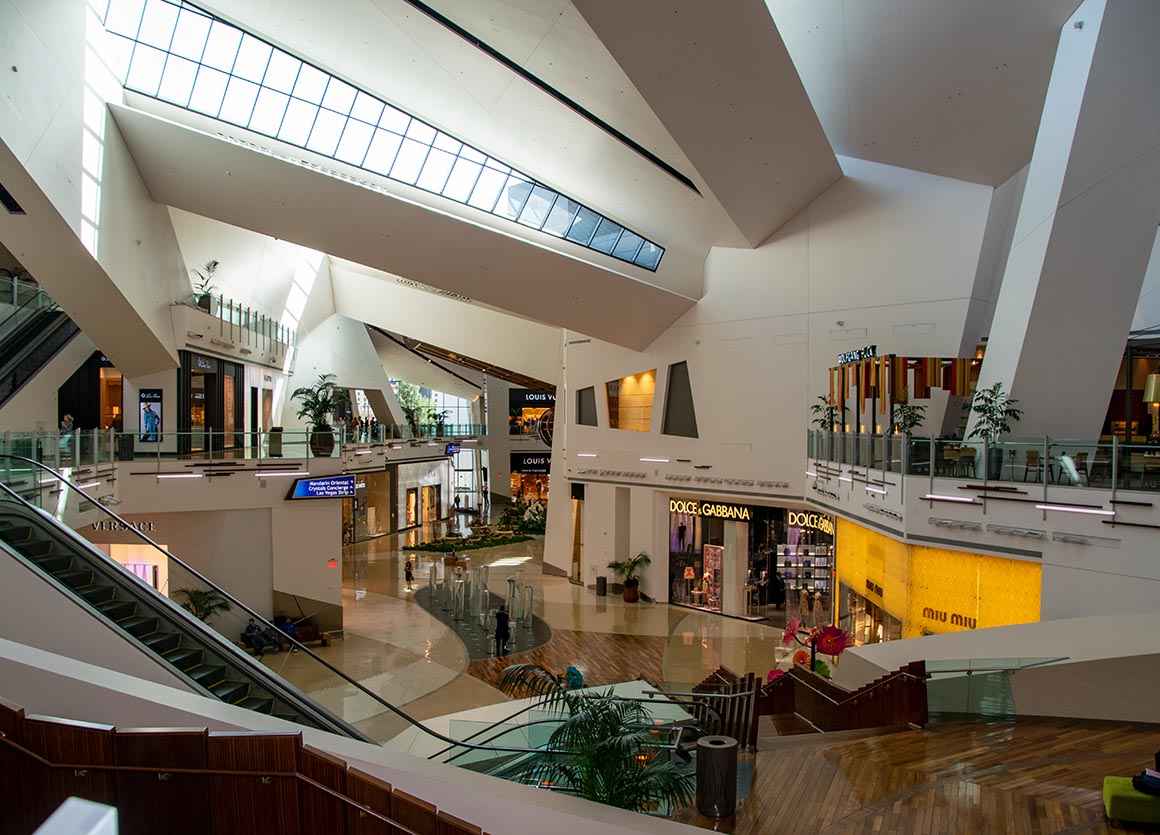 Im Aria angekommen, staunen wir über die Architektur und das zeitgenössische Flair. Und dann, wie auf einer Schatzsuche, schlendern wir durch das angrenzende Crystals, an Geschäften vorbei, die so luxuriös sind, dass selbst die Schaufensterpreise Schweißperlen auf unsere Stirn zaubern. Chanel, Louis Vuitton – leider nichts für unser Budget.