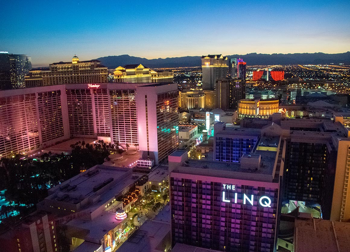 Oh, habe ich schon erwähnt, dass unsere Füße inzwischen flach wie Pfannkuchen sind? 😅 Wir beschließen, direkt zum Strip zu fahren und parken unser Auto im Parkhaus des Linq. Nachdem wir uns durch das komplett neu gestaltete Hotel hindurchgekämpft haben, steuern wir die neueste Attraktion in der Spielerstadt an.