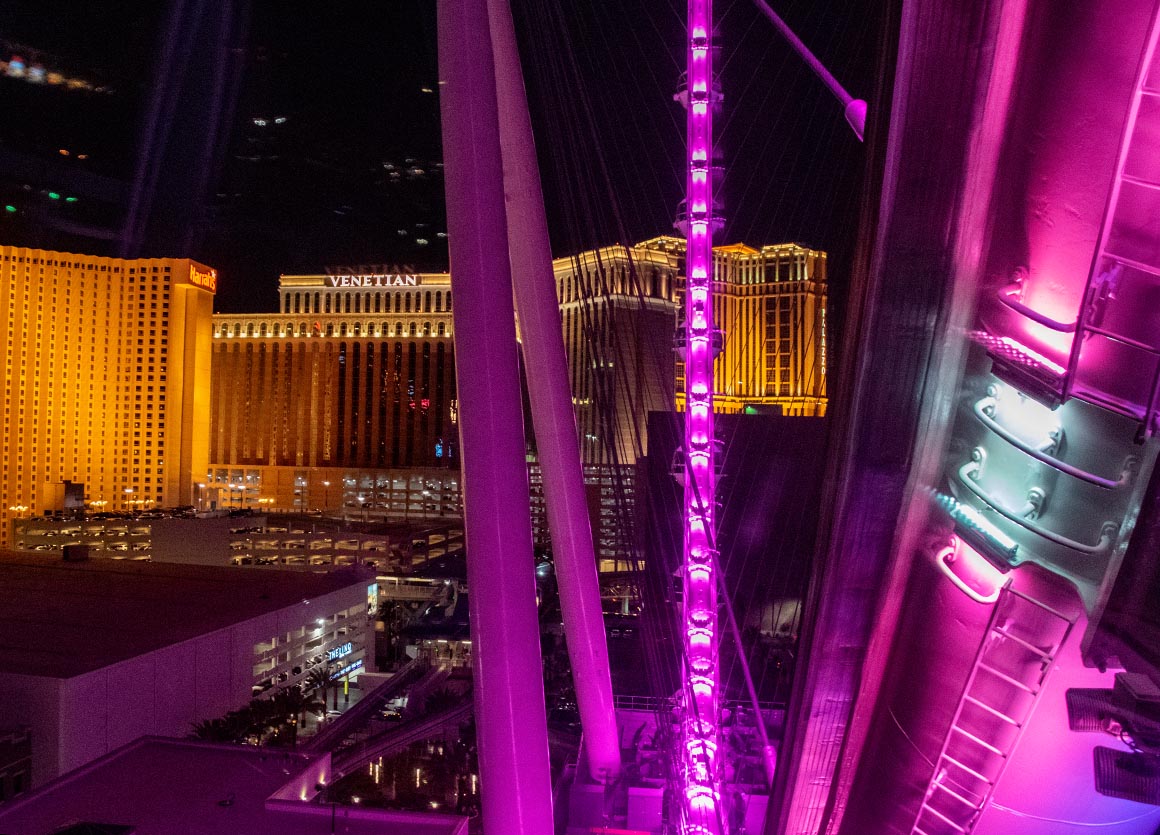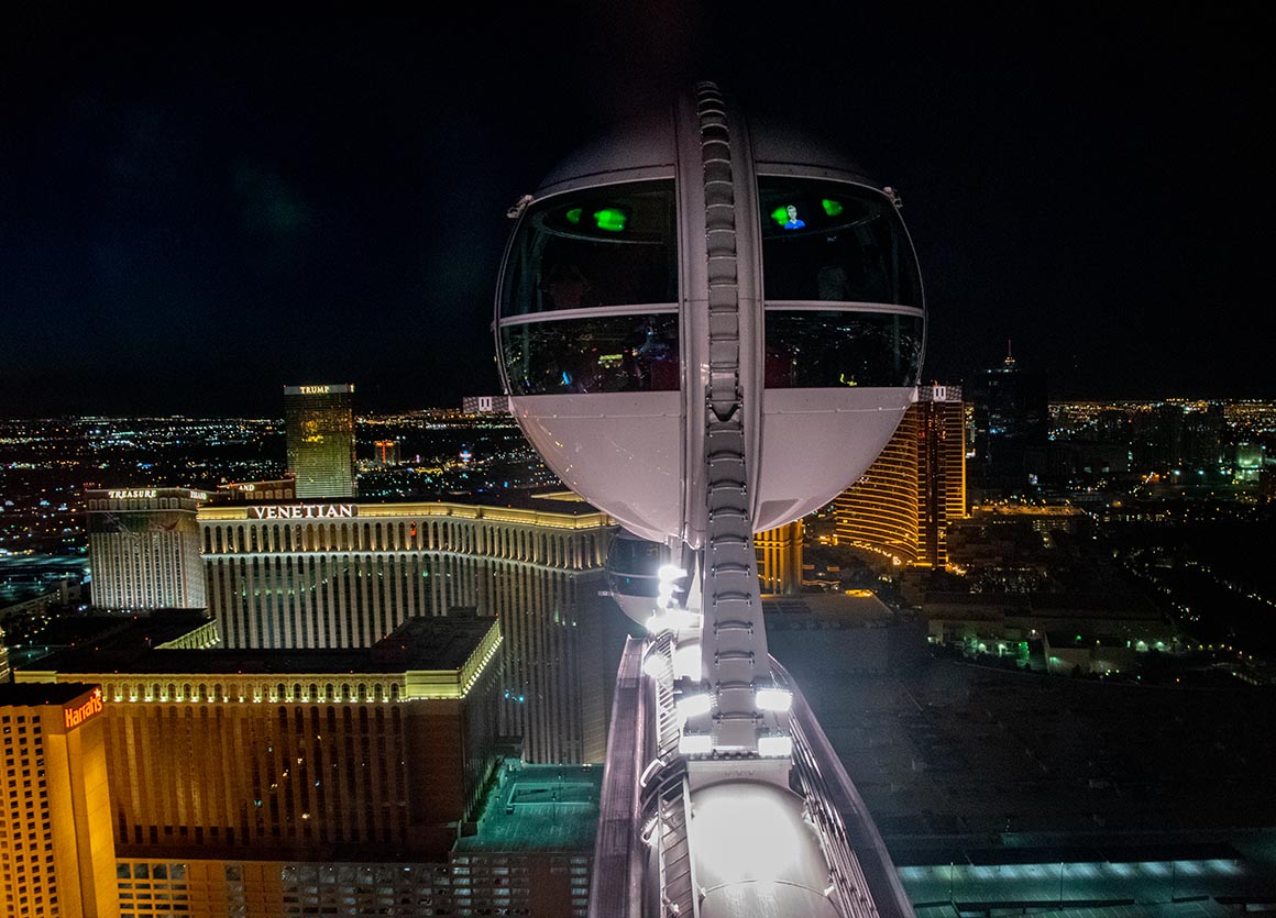 Der High Roller beeindruckt mit stolzen 167,6 Metern Höhe und übertrifft damit den „Singapore Flyer“. Das Riesenrad in Singapur hielt mit 165 Metern bisher den Weltrekord. Der High Roller verfügt über 28 verglaste Gondeln, in denen jeweils bis zu 40 Personen den atemberaubenden Blick auf Las Vegas genießen können.