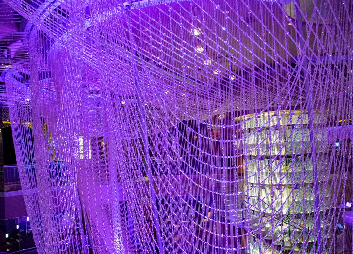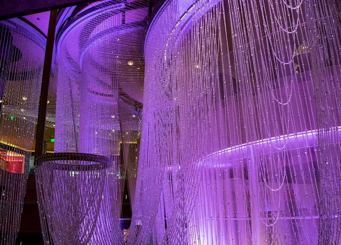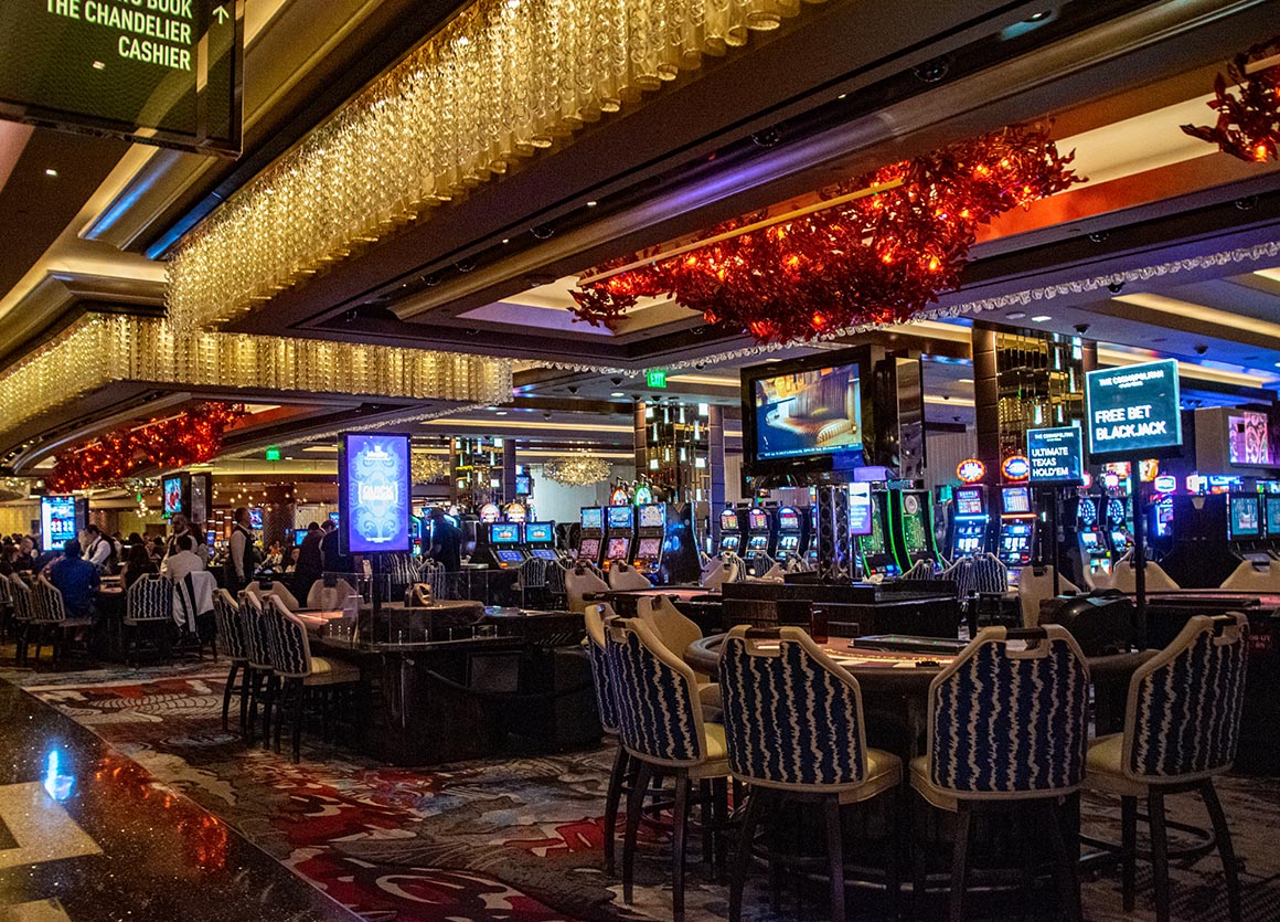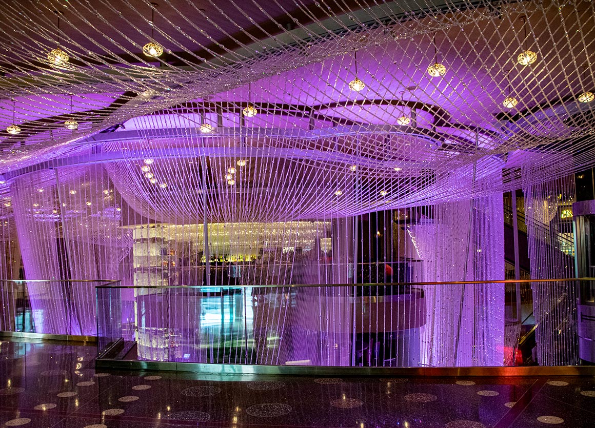 In der Zwischenzeit machen wir es uns auf den gemütlichen Sofas des gigantischen Kronleuchters bequem, der sich mit funkelnden Fäden und Kristallen über drei Stockwerke der Chandelier Bar erstreckt. Ein bisschen „gammeln“ auf einem solchen königlichen Möbelstück schadet sicherlich nicht, vor allem wenn man die umwerfende Atmosphäre in diesem Casino erleben kann.