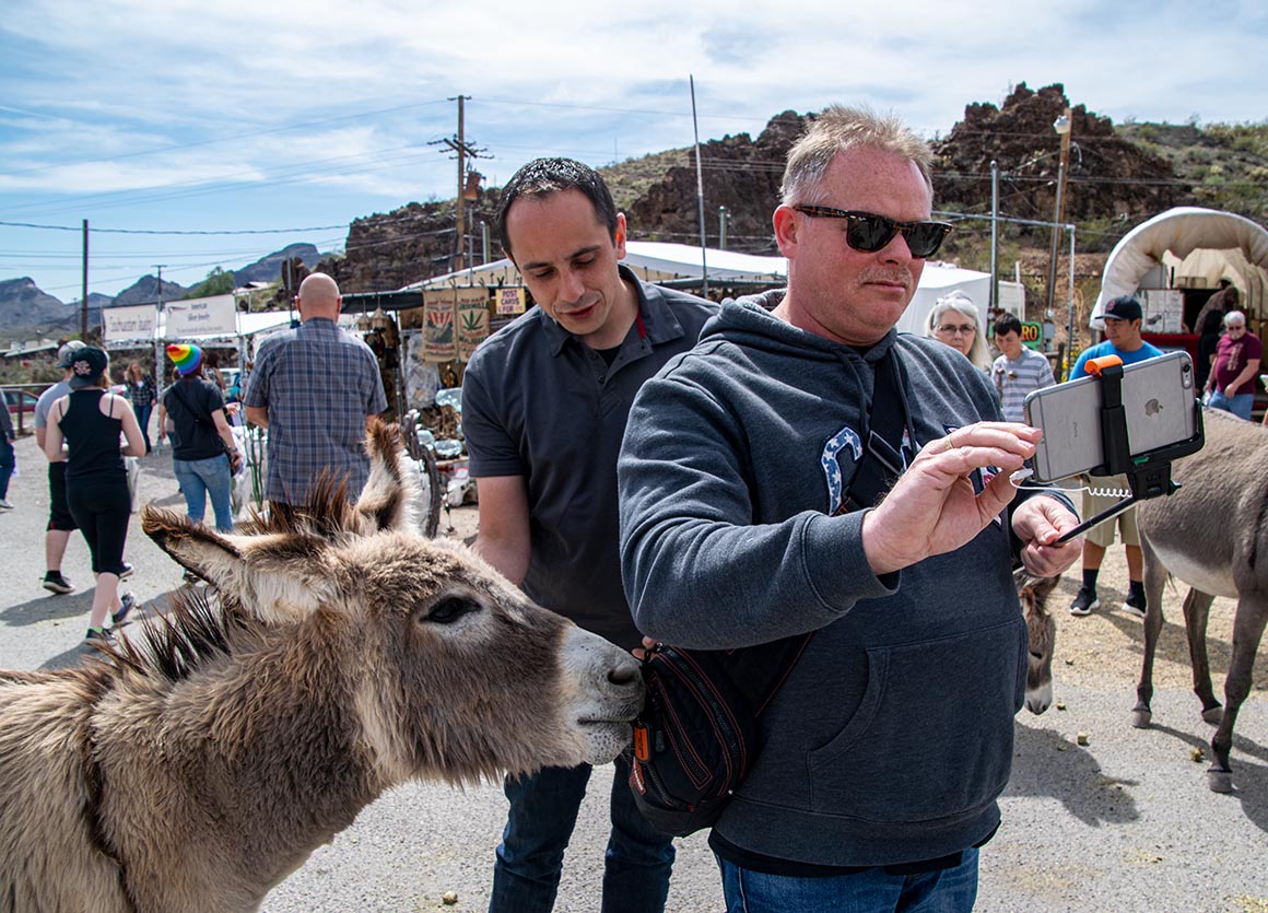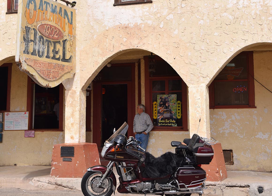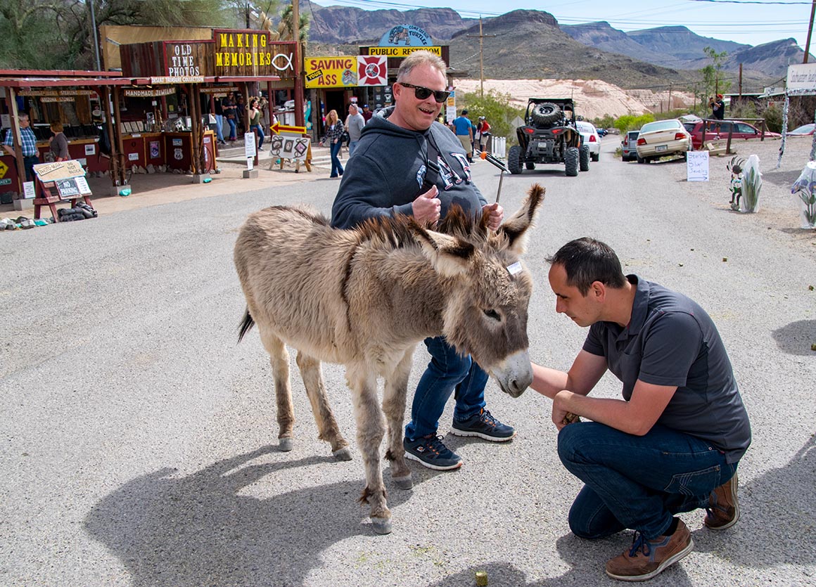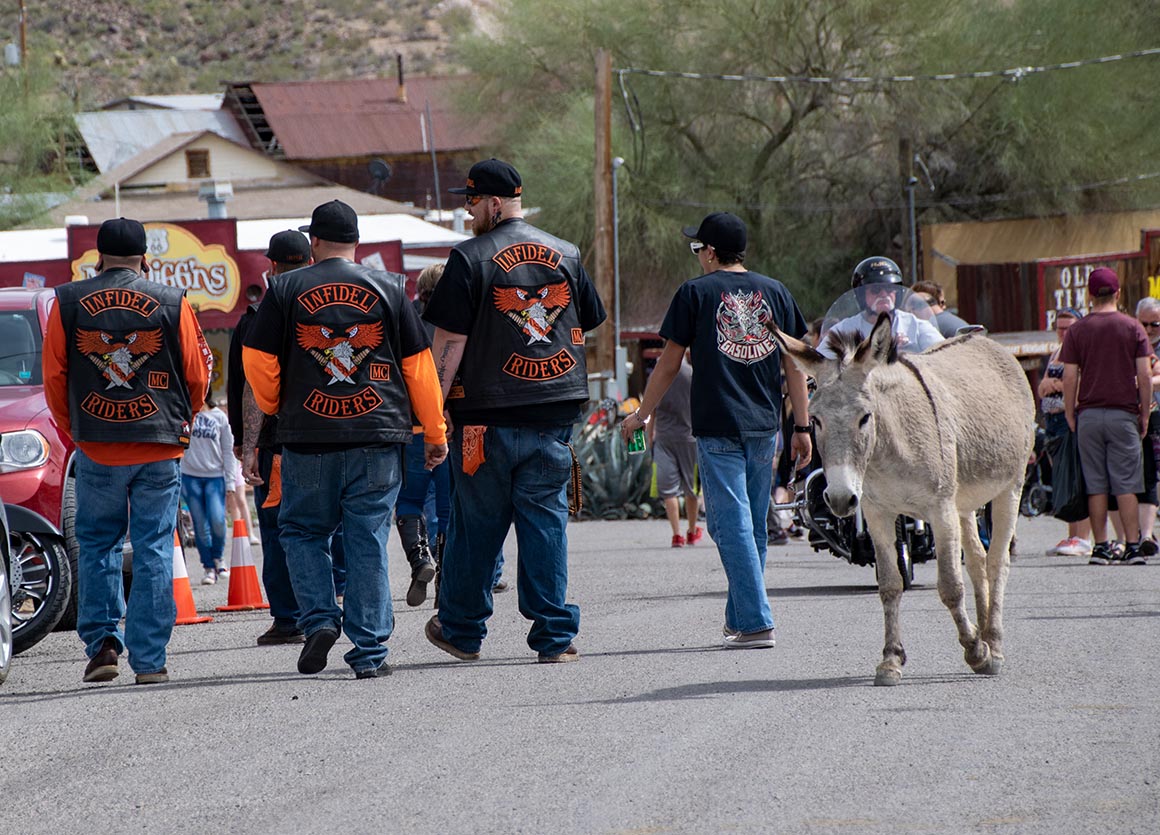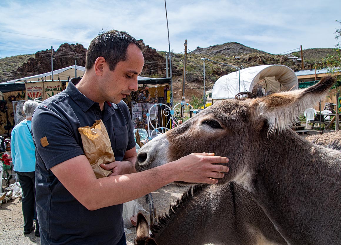 Die Main Street in Oatman hat definitiv eine skurrile Note: Fußgänger, Motorradfahrer, Autofahrer und Esel teilen sich die Straße – wobei die Esel natürlich immer Vorfahrt genießen. Das führt gelegentlich zu längeren Staus, denn die Esel haben es nicht gerade eilig. Wenn sie beschließen, stehen zu bleiben, dann stehen sie. Egal, wie groß und breit die Harley oder der RAM-Pickup ist, der gerade vorbeifahren möchte. Die Esel lassen sich nicht beeindrucken.