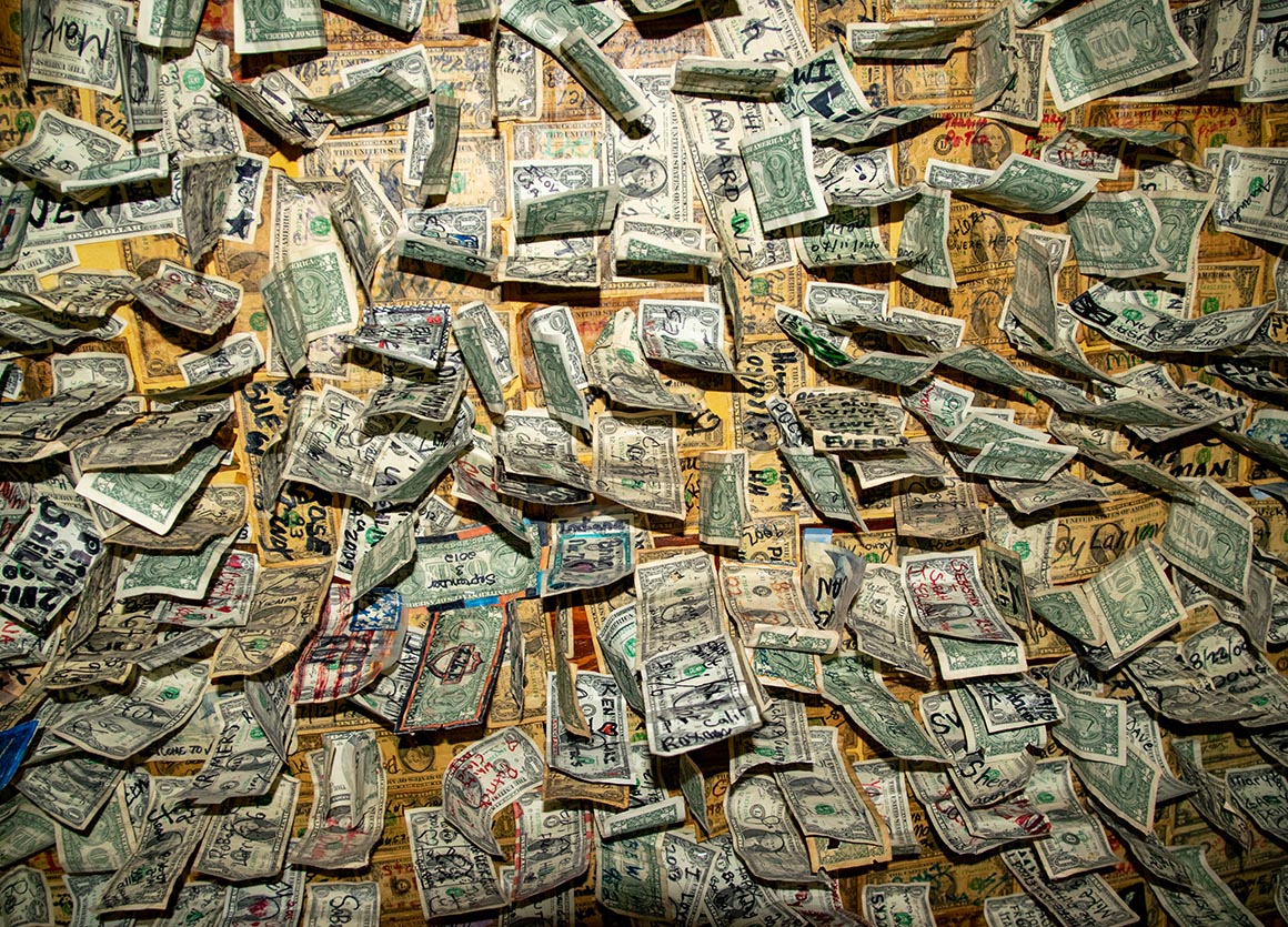 Für einen gemütlichen Abschluss setzten wir uns auf ein Bier an die Dollar-Bill-Bar im Hotel. Die Wände dieses kleinen Refugiums sind förmlich über und über gespickt mit Dollar-Scheinen, von jedem einzelnen Besitzer stolz signiert. Seit den frühen 1990er Jahren haben sich so viele Scheine angesammelt, dass selbst das angrenzende Restaurant mittlerweile mit der charmanten Tapete aus Dollar-Noten geschmückt ist. Hier wird jedes Geldstück zu einem kleinen Kunstwerk, zu einer Geschichte.