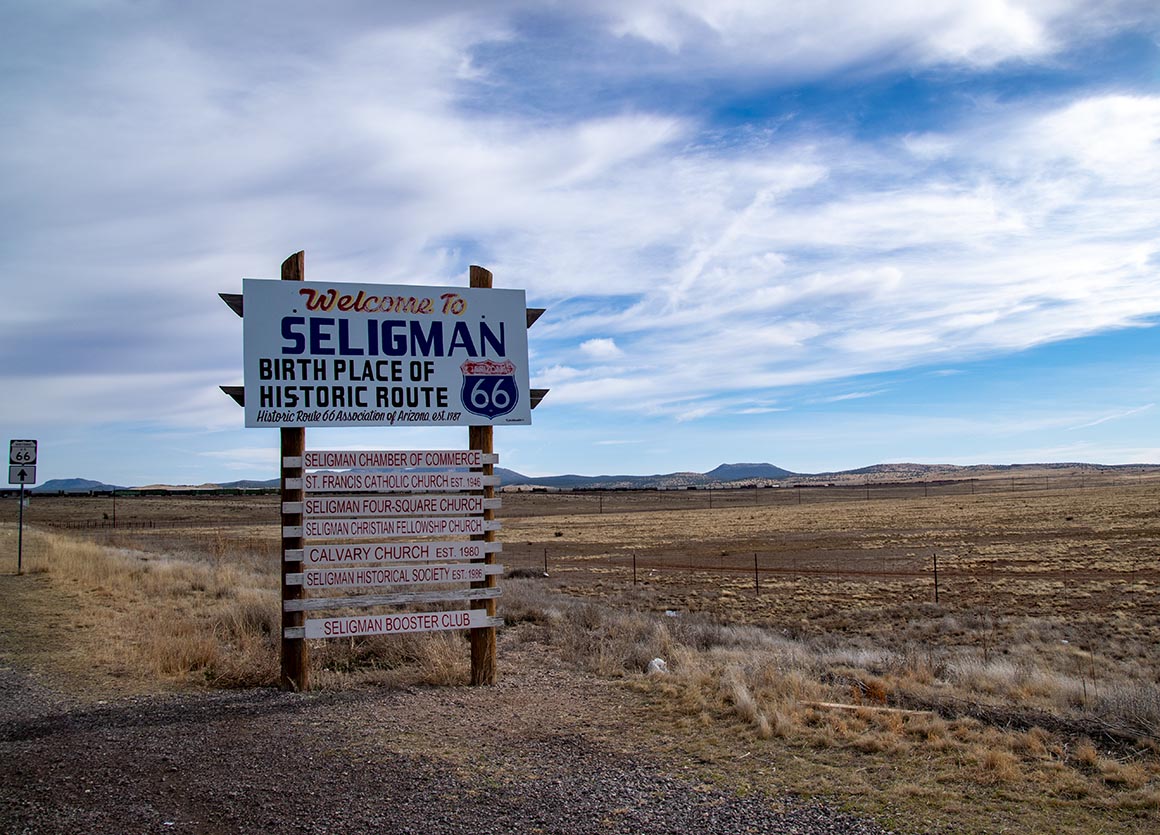 Die ersten zwei Stunden auf dem Highway 5 nach Seligman sind ehrlich gesagt nicht gerade das, was man als die aufregendste Fahrt seines Lebens bezeichnen würde. Ein bisschen wie Kaugummi kauen – langezogen und eher unspektakulär. Aber Moment mal! In Seligman ändert sich plötzlich alles, und wir treten ein in einen prächtig erhaltenen Abschnitt der legendären Historic Route 66.