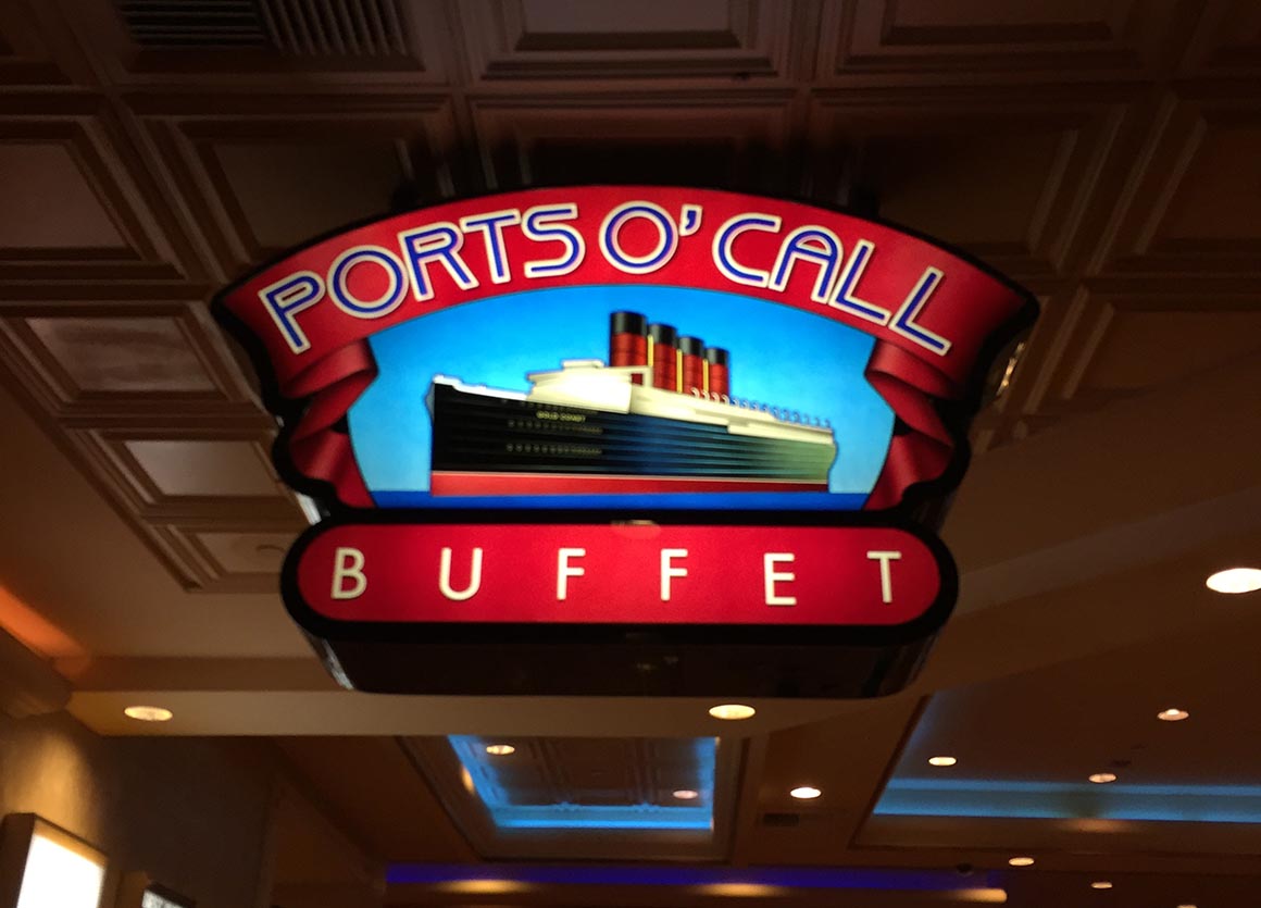 Unsere Wahl für heute fällt auf das Buffet im „Gold Coast Hotel und Casino“. Dank unserer Anmeldung im Playersclub erhalten wir sogar noch $1 Rabatt auf den ohnehin günstigen Preis von $7,99. Das Paket beinhaltet alles – Speisen und Getränke in Hülle und Fülle. Das warme und kalte Buffet ist abwechslungsreich, und es gibt sogar eine „Eier-Station“, an der man sich ein individuelles Omelett oder Eier nach Belieben zubereiten lassen kann.
