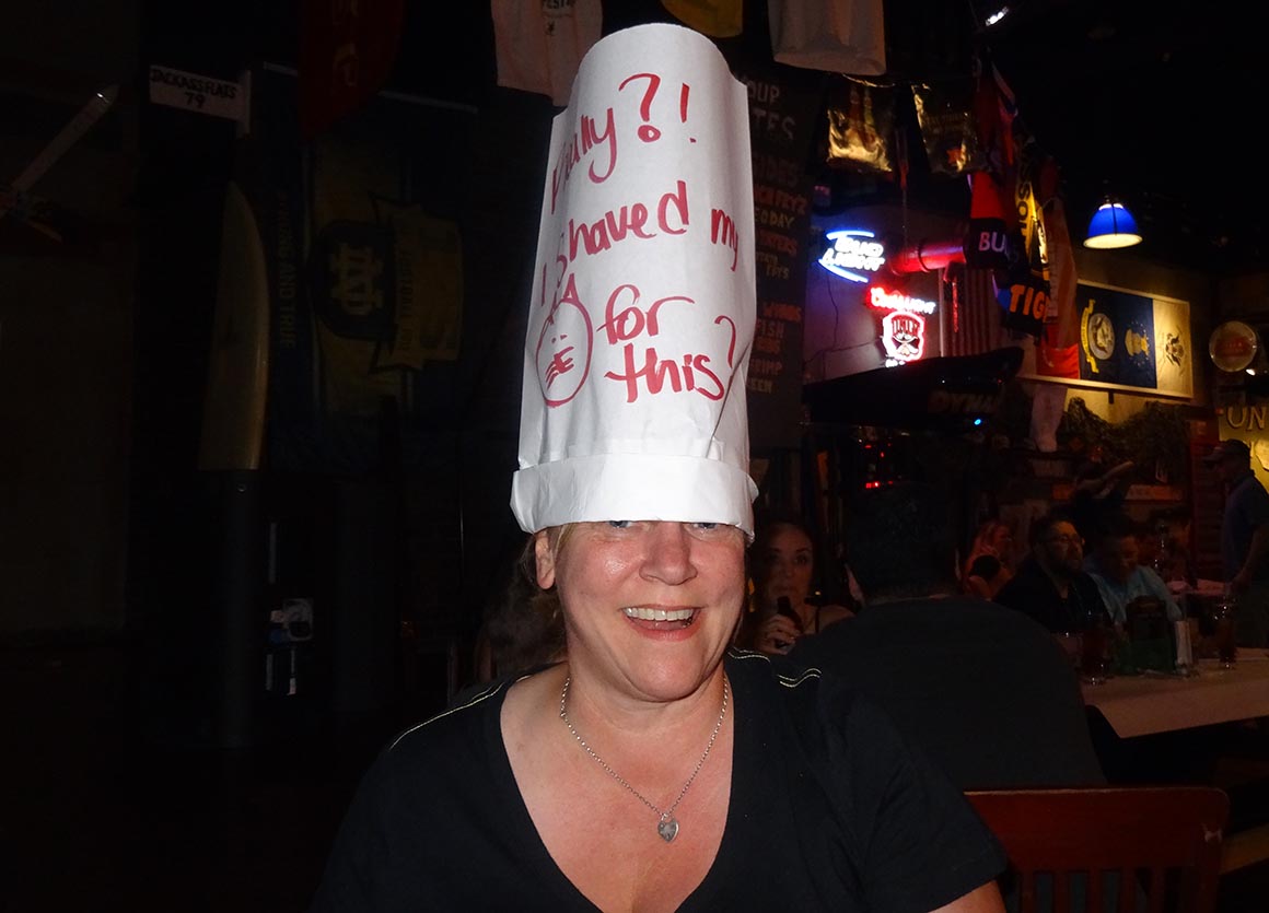 Wir entschieden uns, essen zu gehen. Benni hatte sich ein Dinner im Dick’s Last Resort gewünscht, das sich im Excalibur Casino in Las Vegas befindet. Wir bekamen die üblichen albernen Papierhüte mit frechen Sprüchen – dazu wirklich gutes Essen.