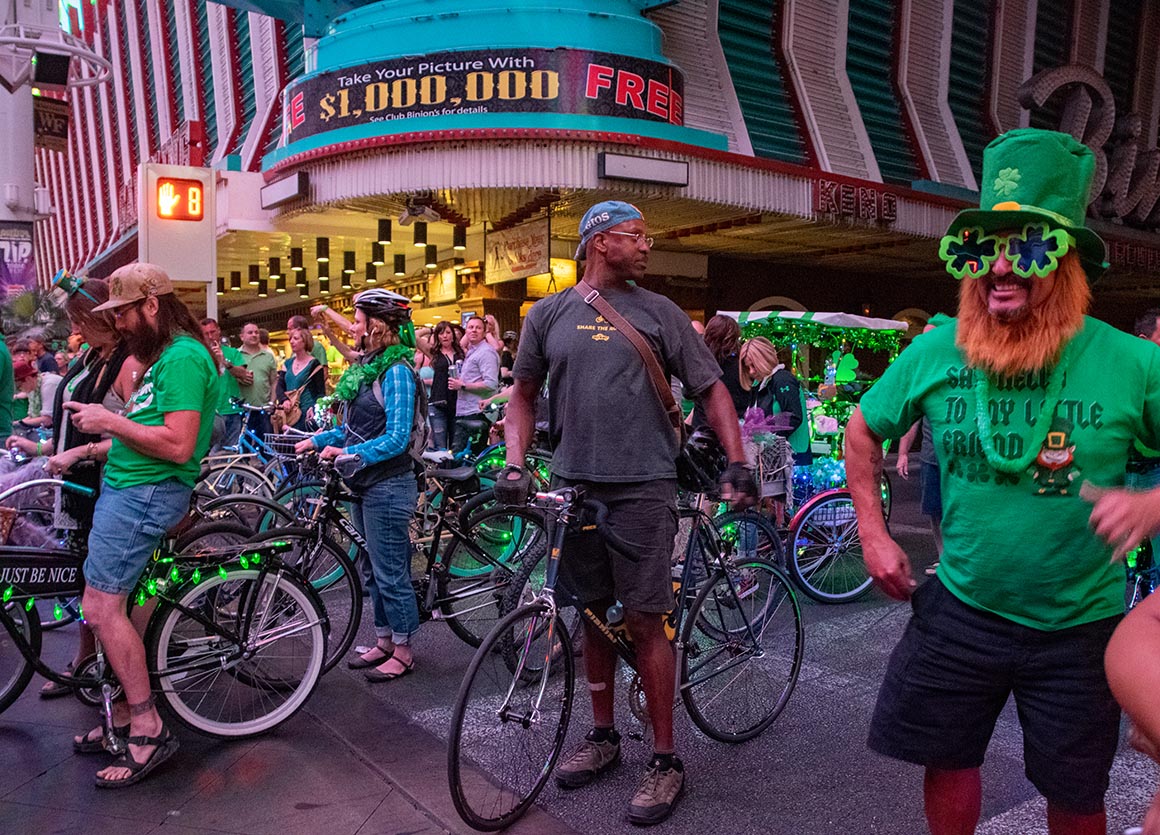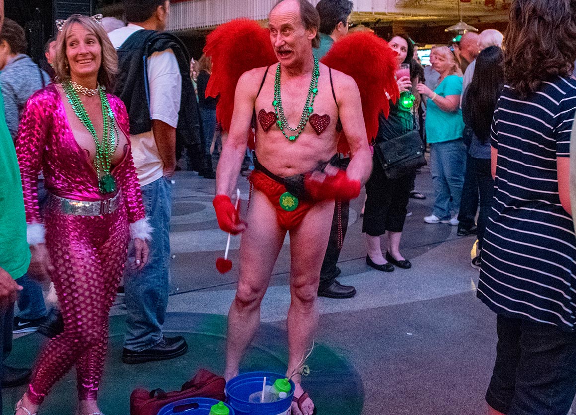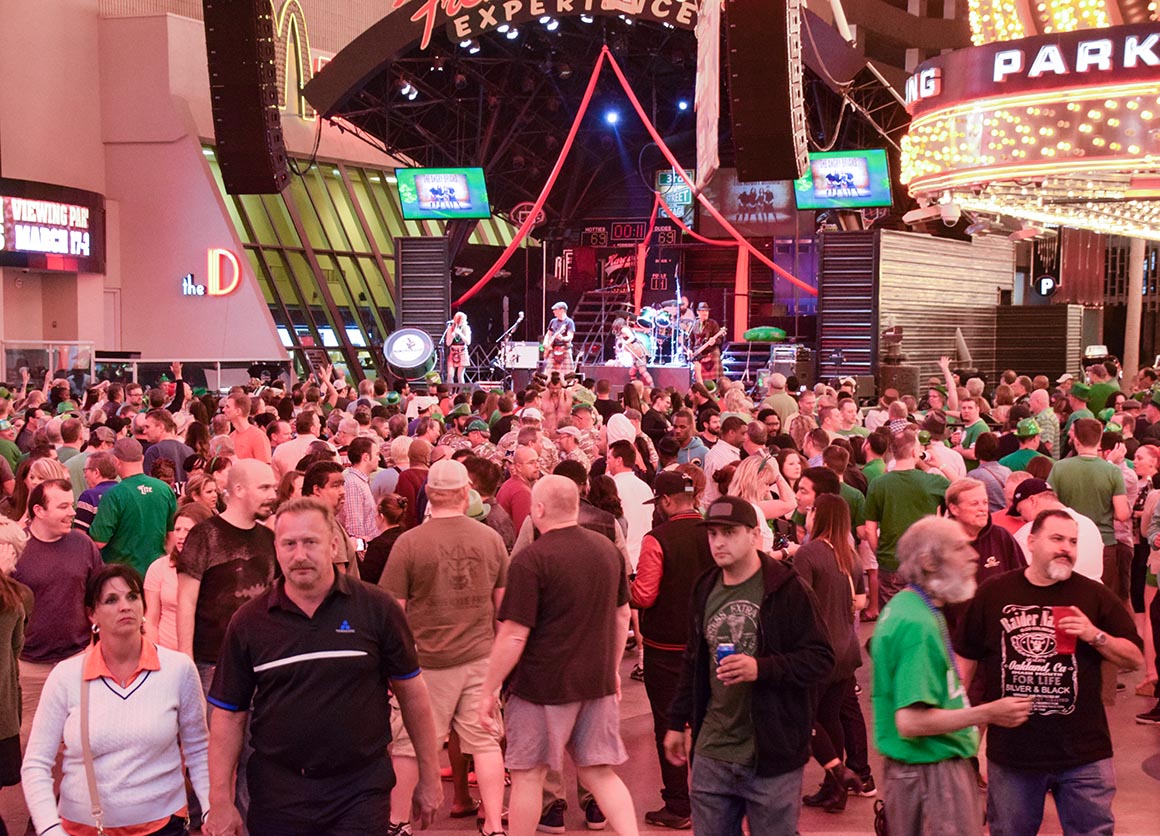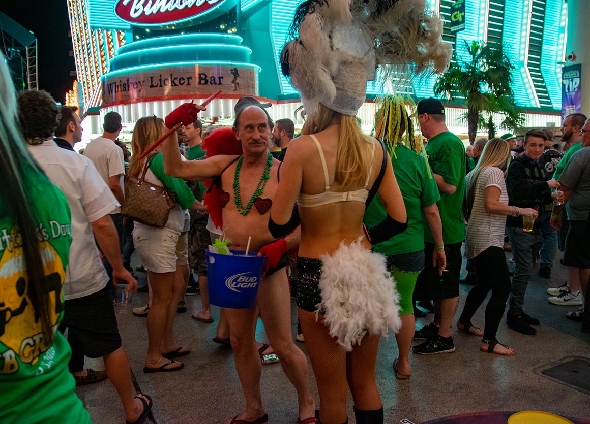 Und jetzt?! Es ist Margarita-Zeit, Leute! Wir schnappen uns die Schlüssel und düsen erneut Richtung Downtown. Heute ist ja Sankt Patricks Day, und auf der Fremont Street ist der Teufel los – und der ist wohl grün. Die Bands, oh die Bands, sind sogar noch besser als gestern. Ich schwöre, irgendwie ist jeder hier grün gekleidet. Grüne Hüte, grüne Shirts, grüne Glitzerboa… man könnte fast meinen, wir wären im Elfenland gelandet. Und betrunken sind definitiv auch alle. Es ist ja schließlich St. Paddy’s Day!