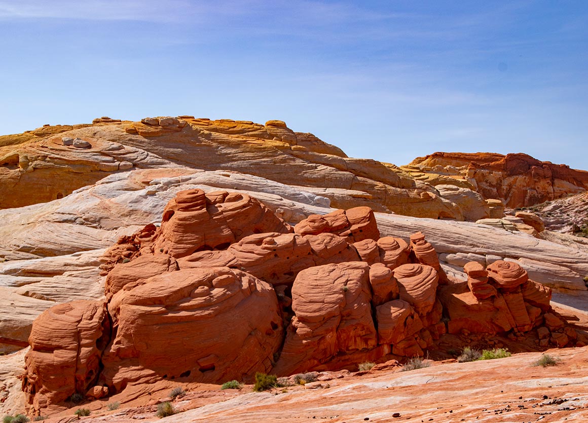 Wir nehmen uns Zeit, diesen wunderschönen Platz in uns aufzunehmen. Die Sonne wirft warme Strahlen auf die Firewave, die in ihrer lebendigen Farbenpracht erstrahlt. Unsere Kamera hat eine Menge zu tun, während wir abwechselnd vor dieser natürlichen Schönheit posieren.