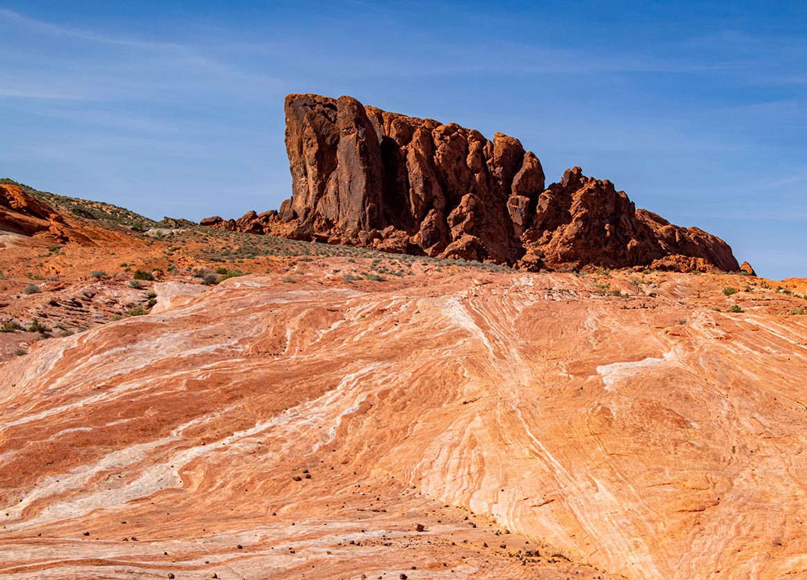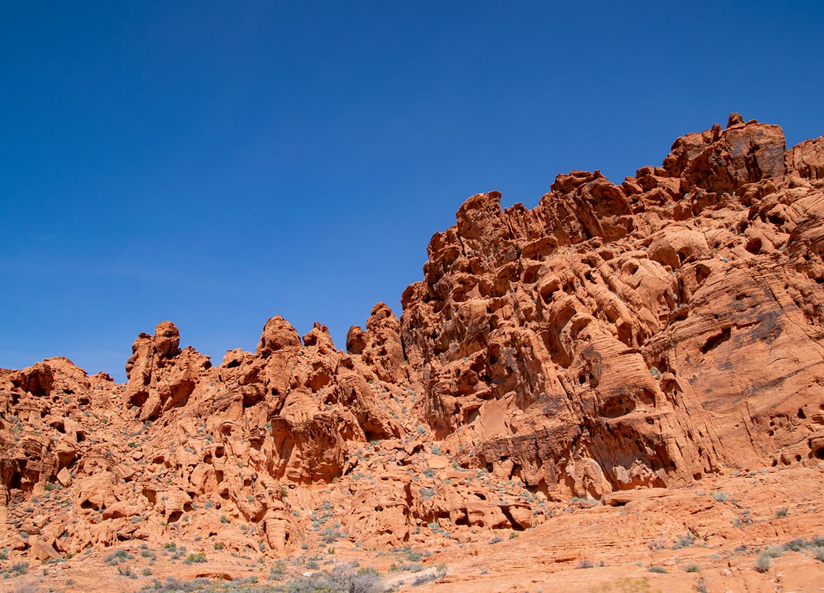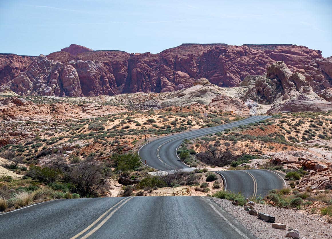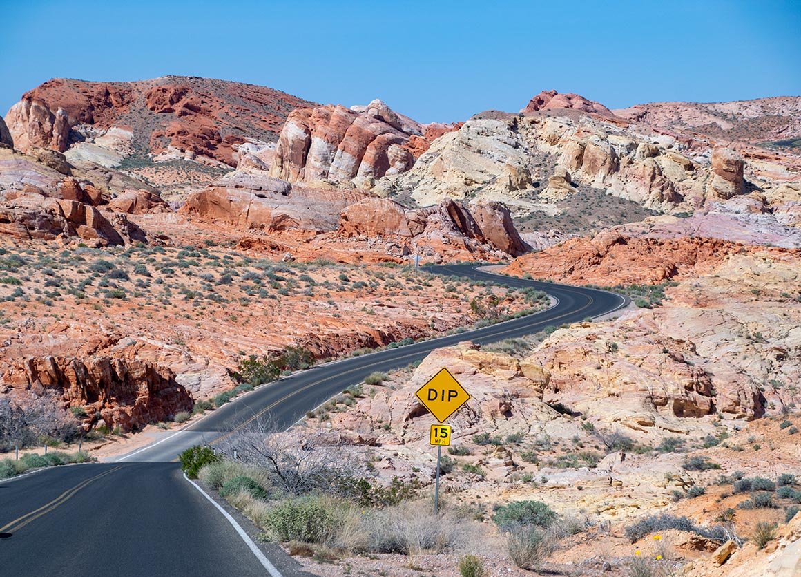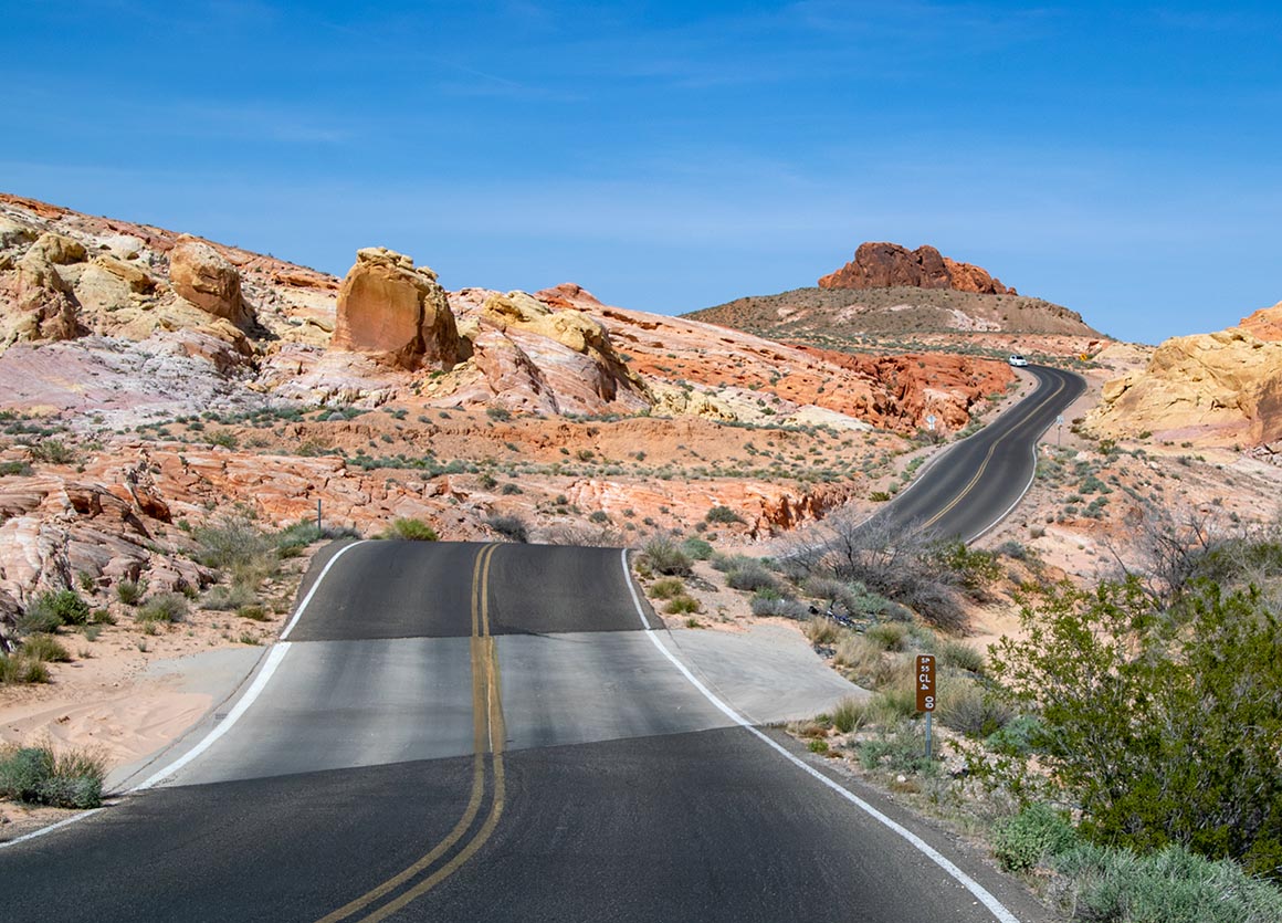 Nach etwa einer Stunde Fahrt ab Las Vegas erreichen wir den Valley of Fire State Park. Nachdem wir die Parkgebühr von 10 Dollar entrichtet haben, gleiten wir eine Meile den Valley Of Fire Highway entlang bis zur Kreuzung mit der Scenic Loop Road.