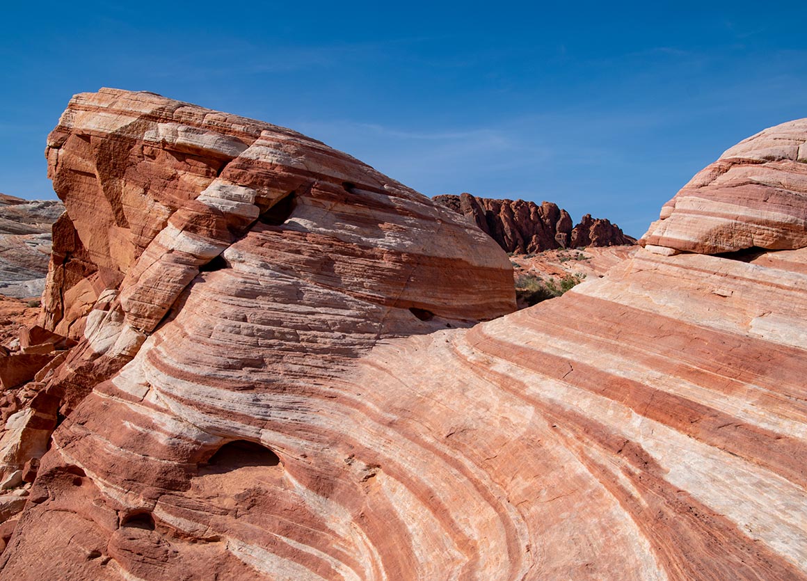Die erste Postadresse, die uns das Navi vorschlägt, erweist sich als Sackgasse. Aber der zweite Anlauf bringt Erfolg. Gut gestärkt mit Briefmarken geht es nun endlich ab ins Valley Of Fire! Unser primäres Ziel ist die Fire Wave. Hier verschmelzen rote und weiße Streifen in den beeindruckenden Sandsteinformationen zu einem faszinierenden Wellenmuster.