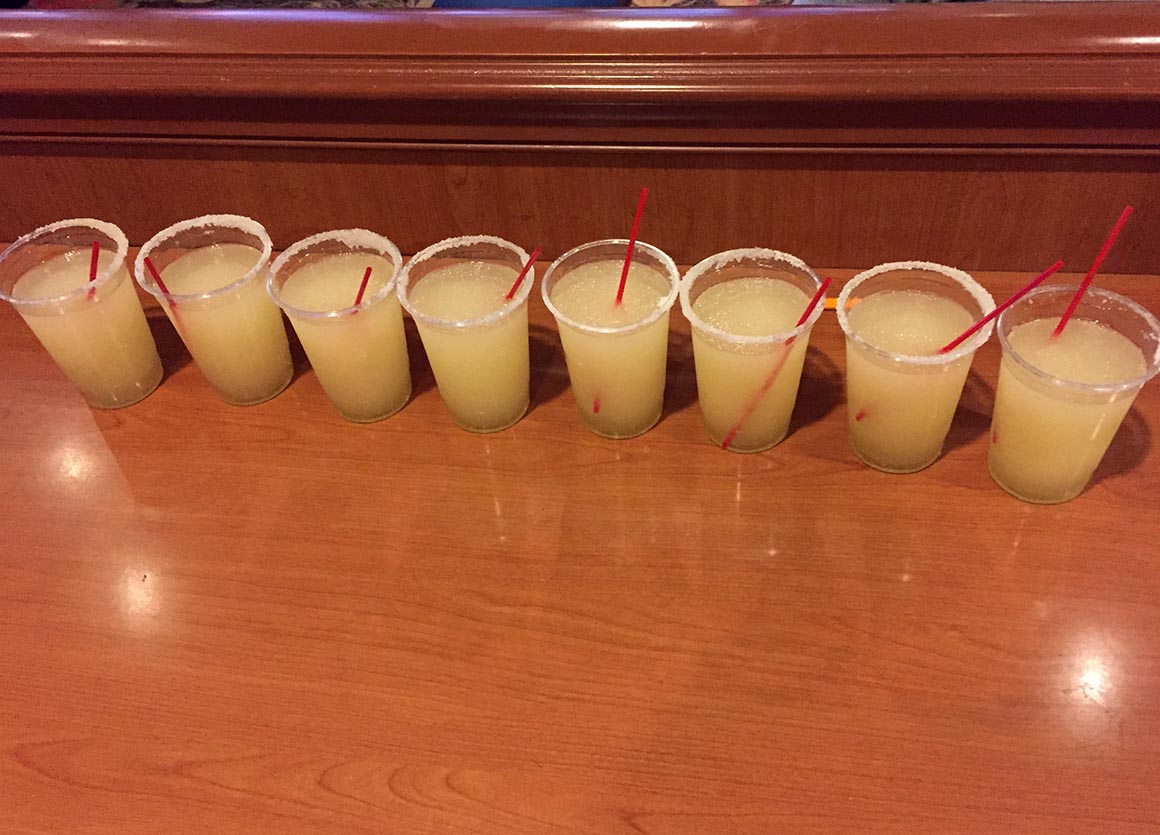 Wir begeben uns wie die gestrandeten Seefahrer auf der Suche zum rettenden Hafen – in unserem Fall zu unserer Lieblingssportbar im Fremont Casino. „Acht Margaritas!“ rufen wir dem Barkeeper zu, der wohl schon unsere Ankunft erwartet hat. Der Mann zaubert die Getränke herbei, als wäre er ein Mixer auf Speed. Wir schnappen uns die Gläser, und genießen unsere Drinks.