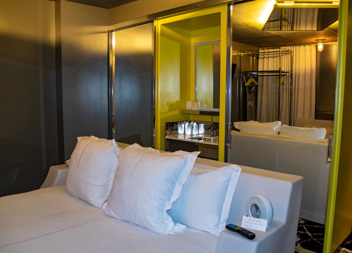 Wieder in Las Vegas angekommen, steht als erstes der Hotel-Check-in auf unserem Plan. Dank eines großartigen Angebots von Meiers Weltreisen, bei denen wir bisher noch nie gebucht haben, können wir uns auf ein besonderes Schnäppchen freuen: 50 € inklusive Resortgebühr pro Zimmer und pro Nacht – normalerweise kostet es mehr als das Doppelte. Wir sind immer offen für neue Erfahrungen und testen gerne verschiedene Hotels am Strip aus. Unser aktuelles Ziel ist ein Hotel, das nach der Schließung des Sahara 2011 für stolze 415 Millionen Dollar renoviert und umgebaut wurde. Im August 2014 wurde es unter dem jetzigen Namen „SLS“ wiedereröffnet.