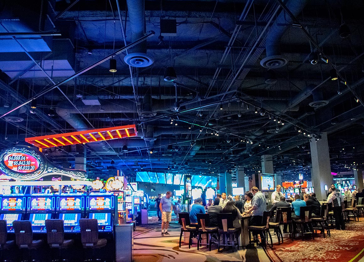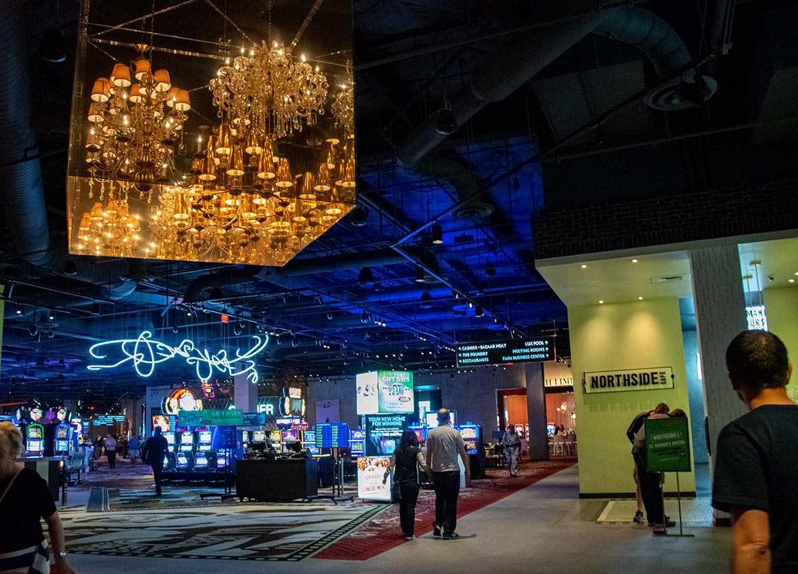 Nachdem wir unser Auto geparkt haben, betreten wir das sehr modern gestaltete Casino. Der erste Eindruck des relativ kleinen Casinos ist für mich etwas düster und unfertig, insbesondere die Fabrik-Stil-Decke in schwarz mit offengelegten Rohren und Leitungen – Geschmackssache, wie ich finde. Doch wir sind gespannt auf das, was uns hier noch erwartet.