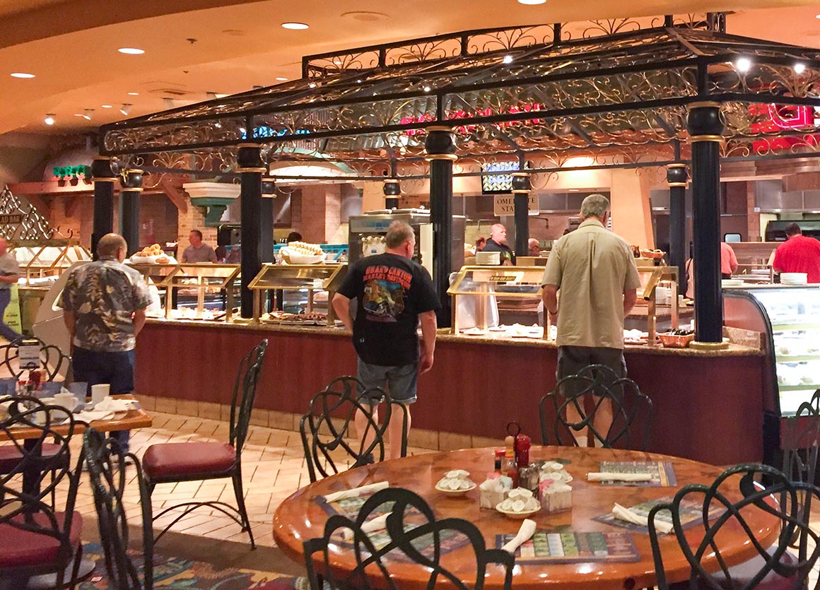 Das Buffet im Orleans übertrifft alle Erwartungen und lässt das Golden Gate alt aussehen – und das für nur einen zusätzlichen Dollar! 😲 Hier gibt’s alles, was das Herz begehrt, und sogar (mega) bunte Kuchen zum krönenden Abschluss. 🍰 Ein echtes Highlight!