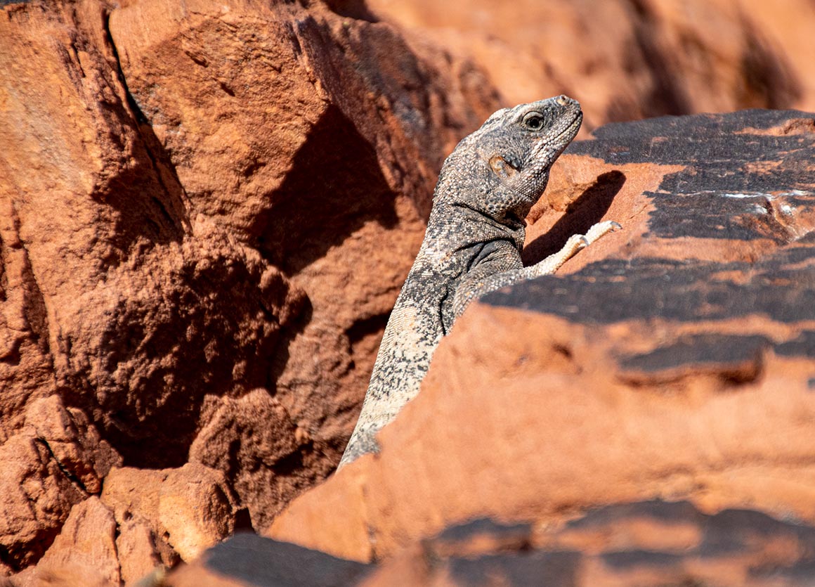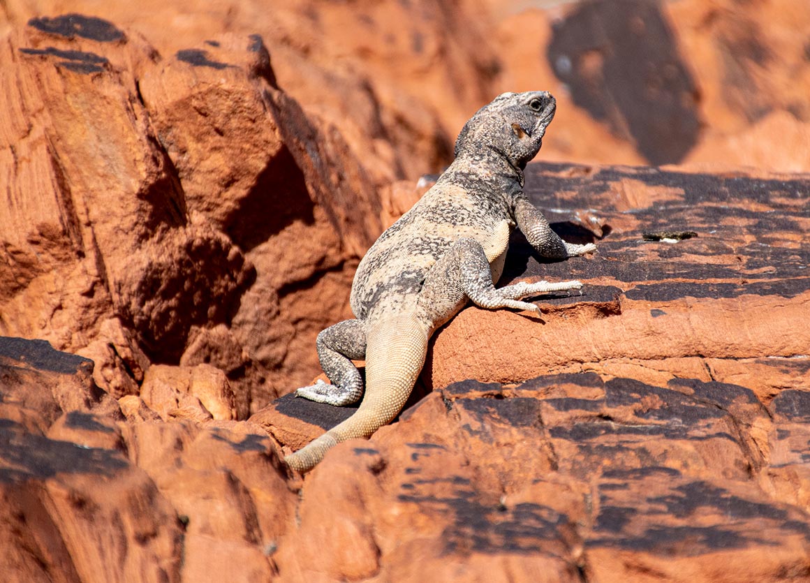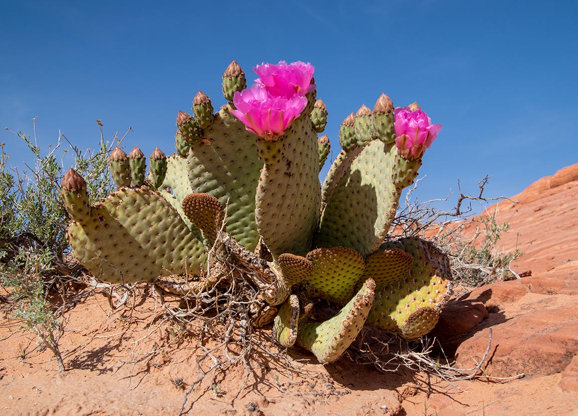 Das letzte Stück des Pfades zur Firewave verspricht bereits aufregende Begegnungen mit hübschen Eidechsen, die sich bereitwillig für Erinnerungsfotos zeigen, und lebhaft blühenden Kakteen. Die Markierungen aus Hinweispfeilen und Steinmännchen weisen uns den Weg durch dieses farbenprächtige Wunderland.