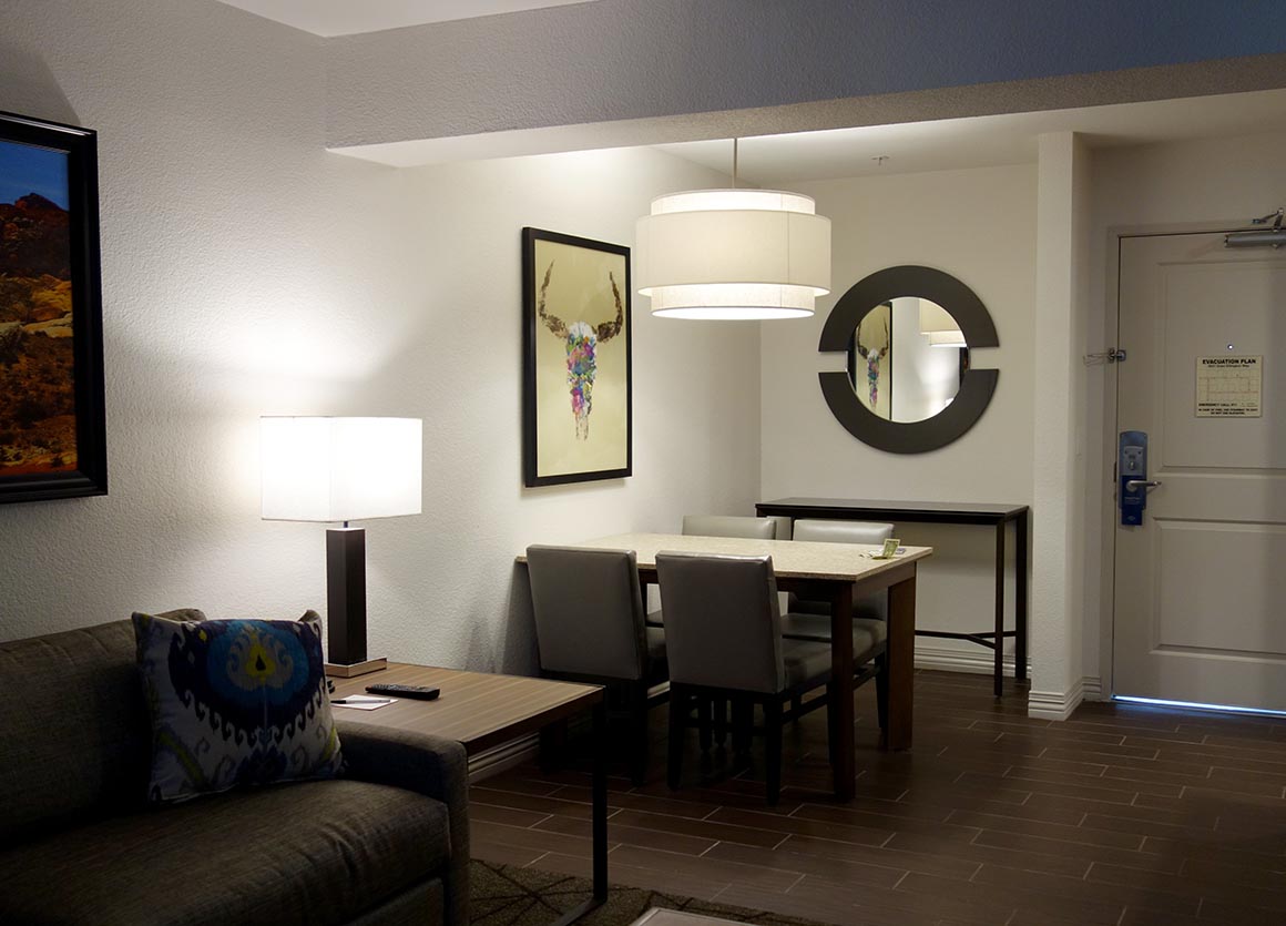 Bevor wir uns wieder ins Getümmel des Strips stürzen, wollen wir natürlich wenigstens kurz einen Blick auf unsere Suite werfen. Und dann: Wow. Nicht „oh, ganz nett“, sondern wow-wow.