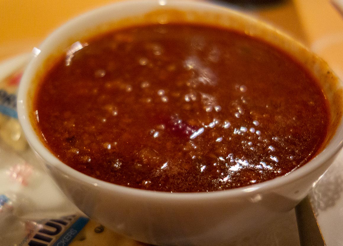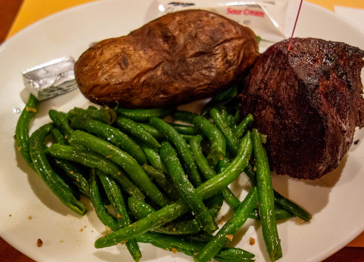 $9,99 für ein Steak. Mit Bohnen, Ofenkartoffel. Und vorher wahlweise Suppe oder Salat. Kein Haken. Kein Trick. Einfach Vegas. Der einzige „Nachteil“: Wartezeit. Mindestens eine halbe Stunde. Aber auch das ist Teil des Spiels. Wir bekommen einen kleinen Pager in die Hand – so ein vibrierendes Plastikding, das aussieht, als hätte es schon viele Abende überlebt – und wissen: Jetzt heißt es Geduld haben.