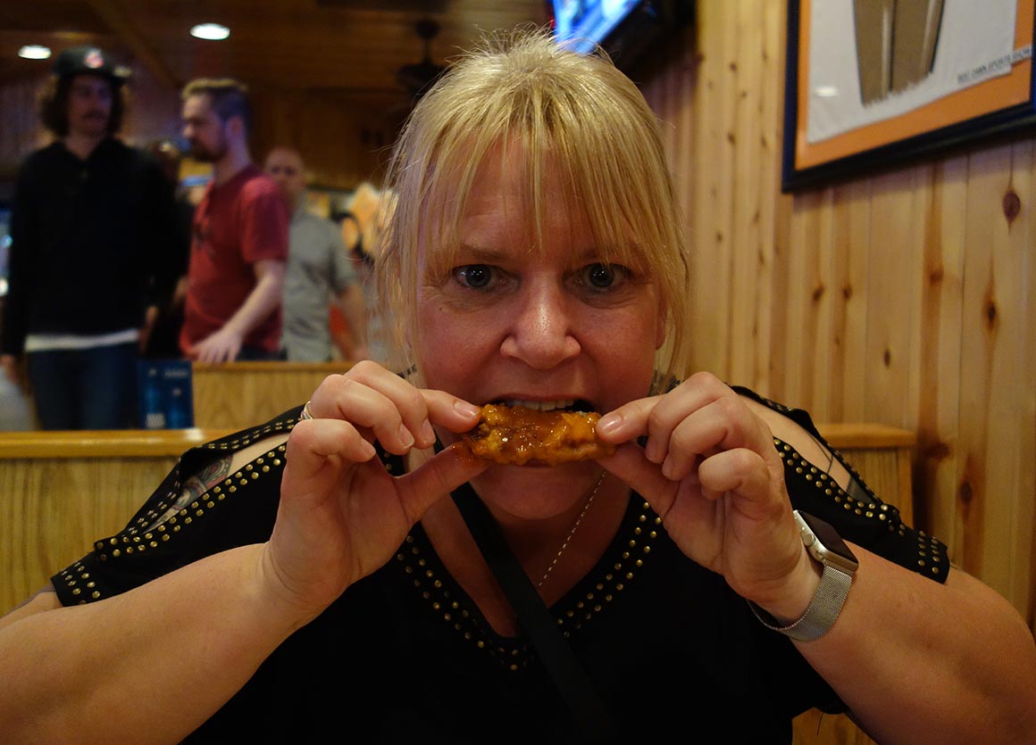 Inzwischen meldet sich ein anderes Problem sehr deutlich: Hunger. Es ist bereits 16 Uhr, Lunch hatten wir noch keinen. Also beschließen wir auf dem Rückweg zum Strip, bei Hooters eine kleine Portion Chicken Wings zu teilen. Nach diesem Gepäckabenteuer haben wir uns das mehr als verdient.