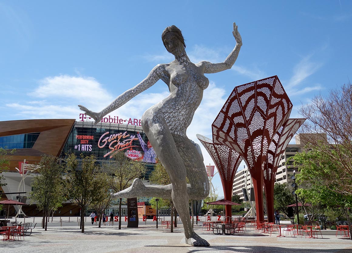 Zum Abschluss spazieren wir durch „The Park“, die Anlage zwischen New York New York und dem Monte Carlo. Erst letztes Jahr eröffnet, wirkt sie wie eine kleine grüne Verschnaufpause mitten im Beton-, Glas- und Neonmeer von Las Vegas. Palmen, Sitzgelegenheiten, entspannte Atmosphäre – fast schon idyllisch. Ein Ort, an dem man kurz vergisst, dass man sich in einer Stadt befindet, die sonst nie schläft und ständig „mehr“ ruft.
