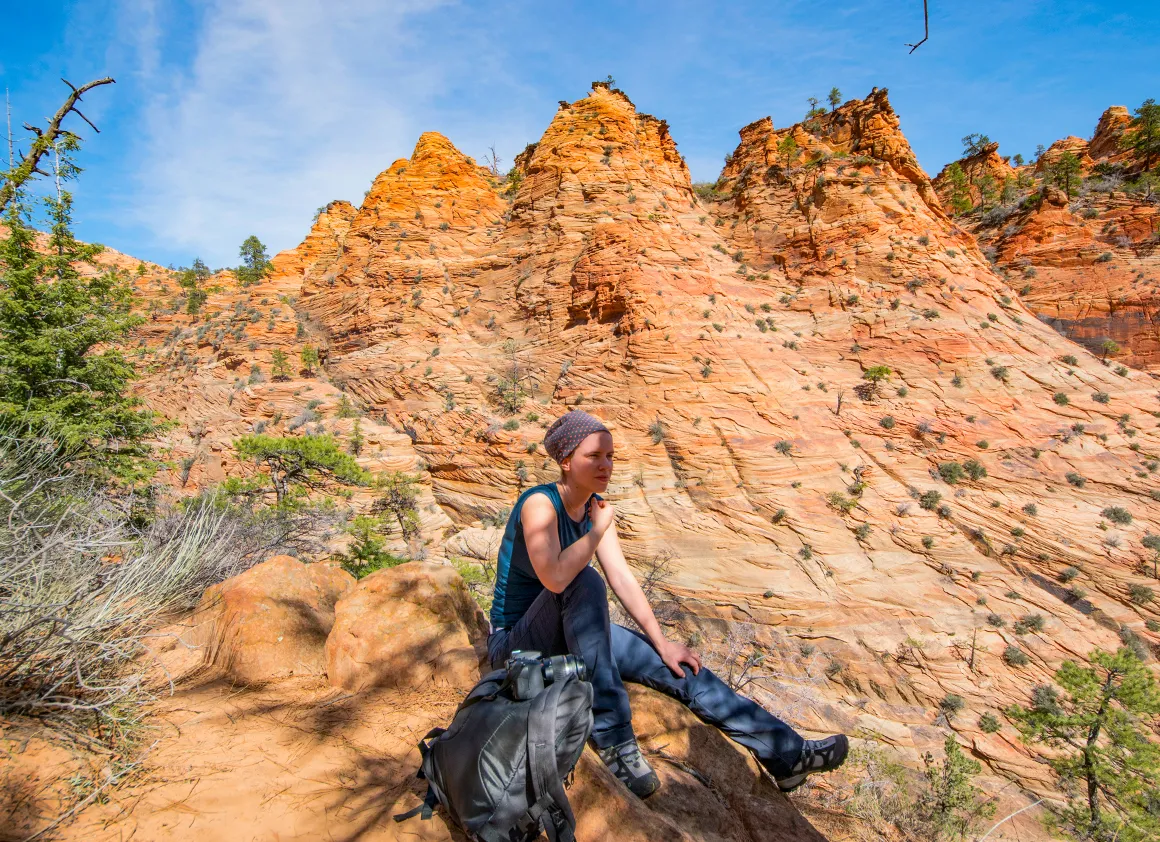 Beim Verstauen der Rucksäcke schweifen die Gedanken schon weiter. Zion liegt ja quasi um die Ecke. Der Zion Canyon Overlook Trail? Kurz, knackig, spektakulär. Eine dieser Ideen, die sofort einstimmig beschlossen werden. Also Türen zu, Motor an – und weiter geht’s.