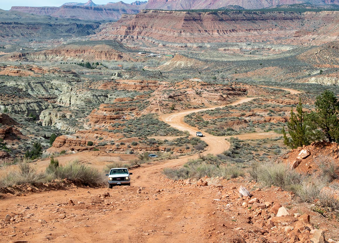 Auf dem iPad entdecken wir sie. Diese vermeintliche Abkürzung, die auf der Karte so harmlos aussieht, dass man sich fragt, warum man überhaupt jemals anders gefahren ist: Smithsonian Butte Scenic Backway. Acht Meilen von Hildale nach Springdale. Acht! Selbst das Navi nickt zustimmend. Scenic Backway. Klingt nach Aussicht, Staub, ein bisschen Abenteuer. Genau unser Ding.