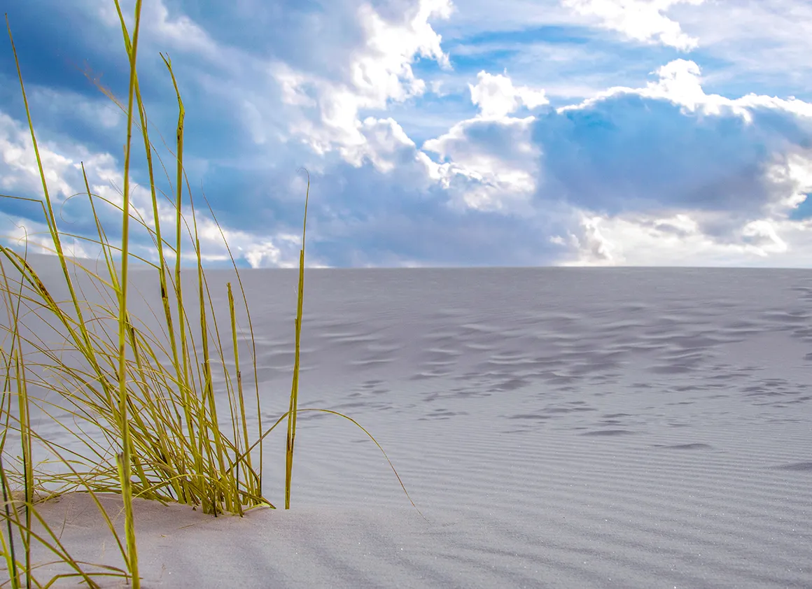 Von hier aus führt der 10 Meilen lange Dunes Drive mitten in die surreal anmutende Landschaft der bis zu 20 Meter hohen Dünen. Der weiße, schimmernde Sand des Monumentes breitet sich vor uns aus, ein beeindruckendes Spektakel, das von den ständigen Winden geformt wird. Die Dünen verändern sich unaufhörlich, ein lebendiges Kunstwerk der Natur.