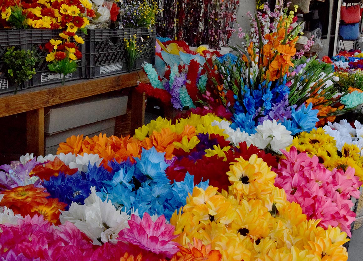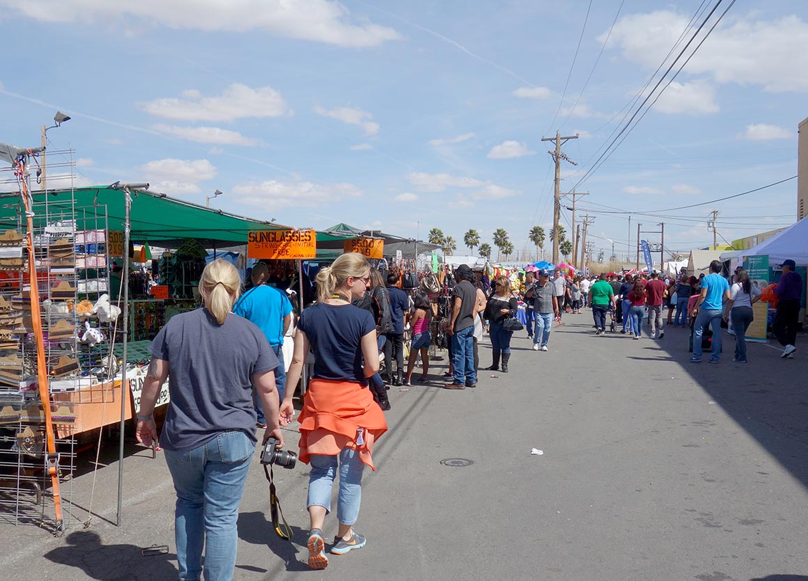 Der Parkplatz ist randvoll, aber wir haben Glück, denn genau vor uns fährt ein Auto aus einer Parklücke. Wir schnappen sie uns, parken ein und machen uns auf den Weg durch die überdachte Plaza zum Flohmarkt im Freien dahinter.