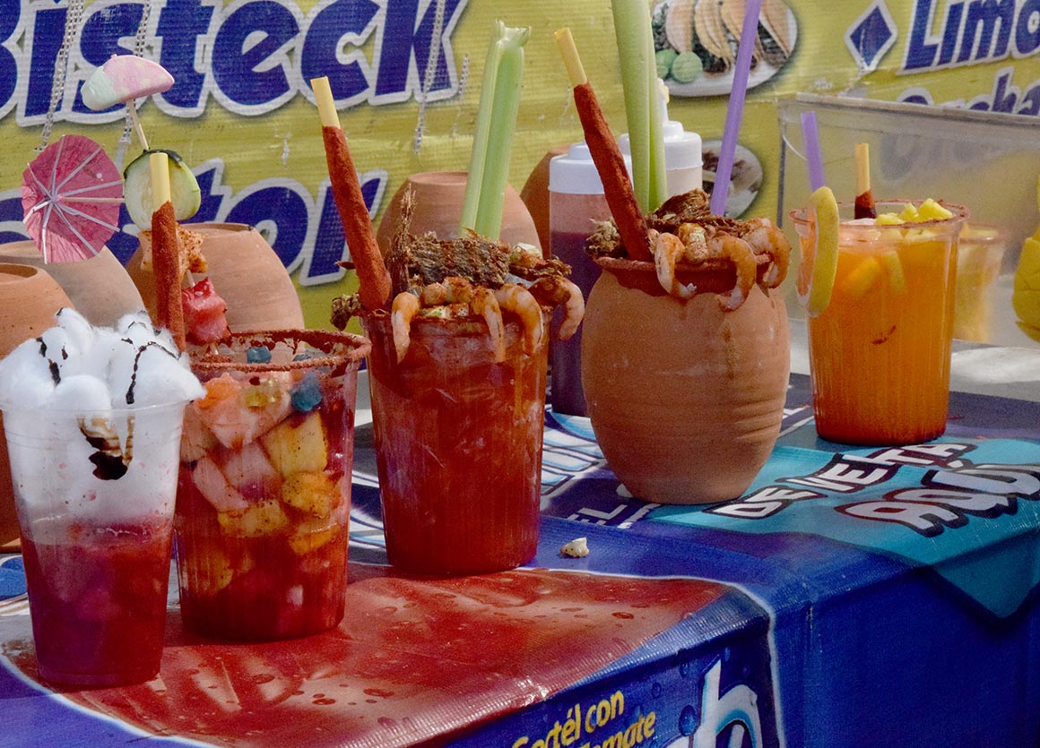 Alles ist bunt, mexikanisch, kitschig und noch bunter. Es gibt Speisen und Snacks, die ich so noch nie gesehen habe. Aber ich bin heute nicht mutig genug, etwas davon auszuprobieren – schließlich sind wir noch eine ganze Weile unterwegs.