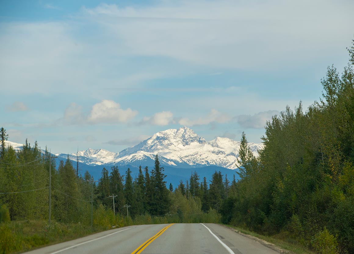 Natürlich denken wir auch an unseren rollenden Brontosaurus, der nach all den Kilometern dringend eine frische Tankfüllung verlangt. Dann heißt es: Adieu Prince George, hallo Abenteuer! Mit jedem Kilometer wird die Landschaft spektakulärer, die Wälder lichten sich, und am Horizont tauchen die ersten schneebedeckten Gipfel auf – wie eine Filmkulisse, die sich langsam entfaltet.