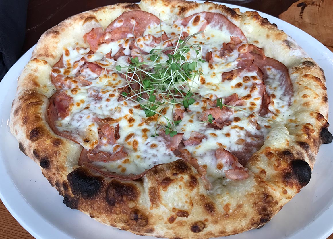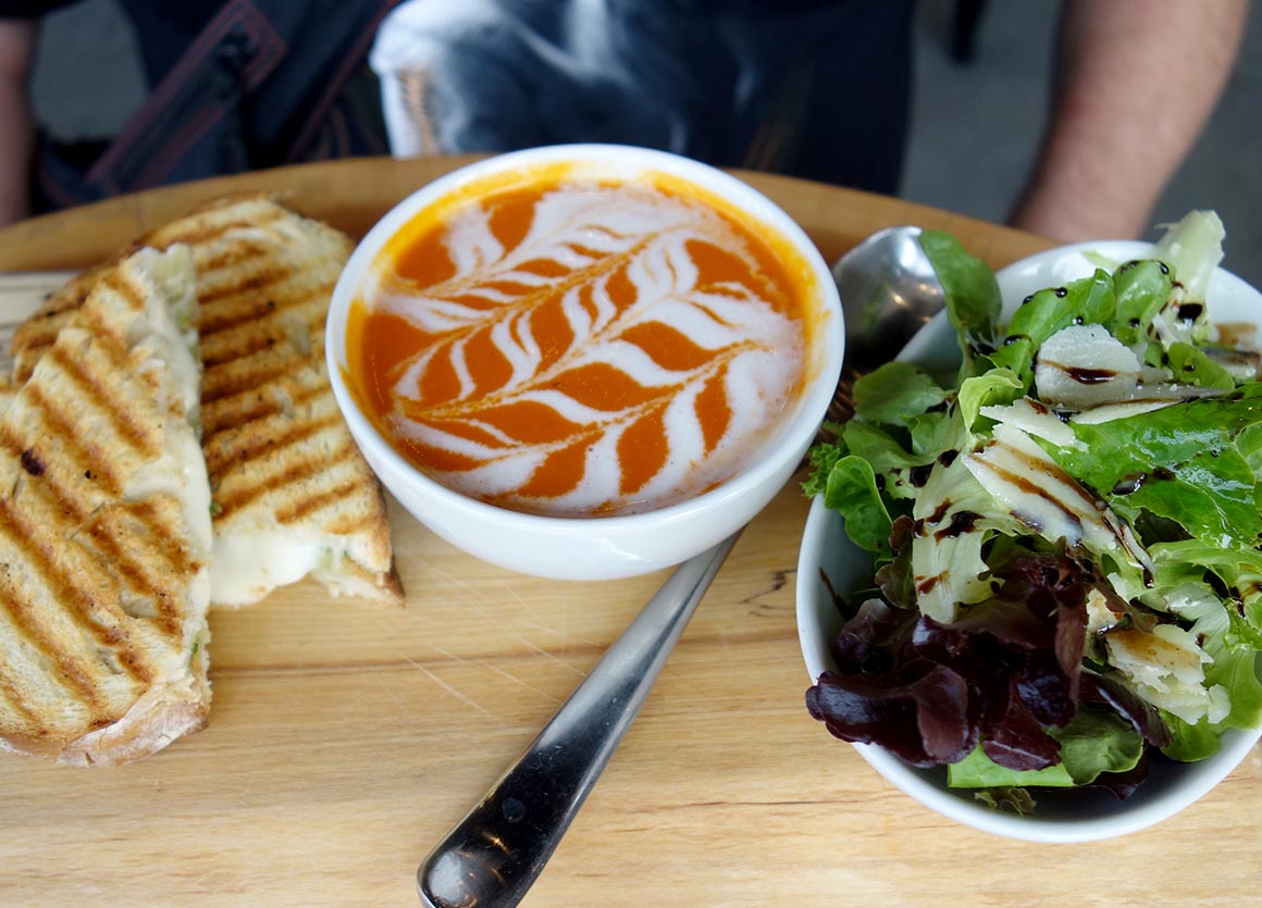 Direkt nebenan wartet unser Lunch-Highlight: Crossroads Brewing. Das Timing könnte nicht besser sein, denn mein Magen knurrt schon lauter als ein startender Greyhound-Bus. Auf dem Tisch landen eine knusprige Pizza, ein Sandwich mit Tomatensuppe und – natürlich – ein Glas hausgebrautes Bier. Leute, das ist kein Lunch, das ist pure Glückseligkeit im Roadtrip-Format.