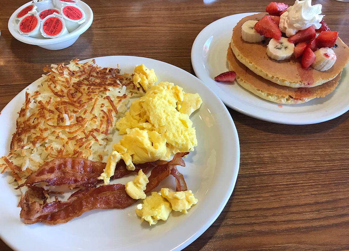 12:00 Uhr: Hallo Bellingham – nur noch etwa 30 Minuten bis zur kanadischen Grenze. Und da entdecke ich rechts an der Interstate einen „Denny’s“. Meine Pancake-Lust kann ich einfach nicht ignorieren. Also, Zwischenstopp bei Denny’s! Übrigens, gegenüber gibt es einen „ROSS-Dress for Less“. Wer weiß, welche unschlagbaren Schnäppchen dort auf uns warten. Also, nichts wie hin!