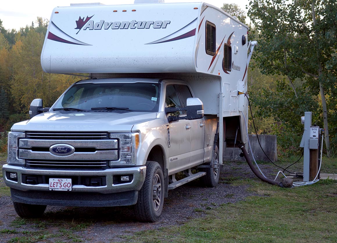 Für die Nacht haben wir uns den Fort Telkwa Riverfront Campground ausgesucht, nur schlappe 15 km entfernt. Der Campground befindet sich direkt am Fluss und punktet mit einem Parkplatz-Charme, der allerdings gepflegt und ordentlich ist. Für schlappe $35 erhalten wir nicht nur schnelles WLAN, sondern auch Strom und Wasser. Ein wirklich fairer Preis.