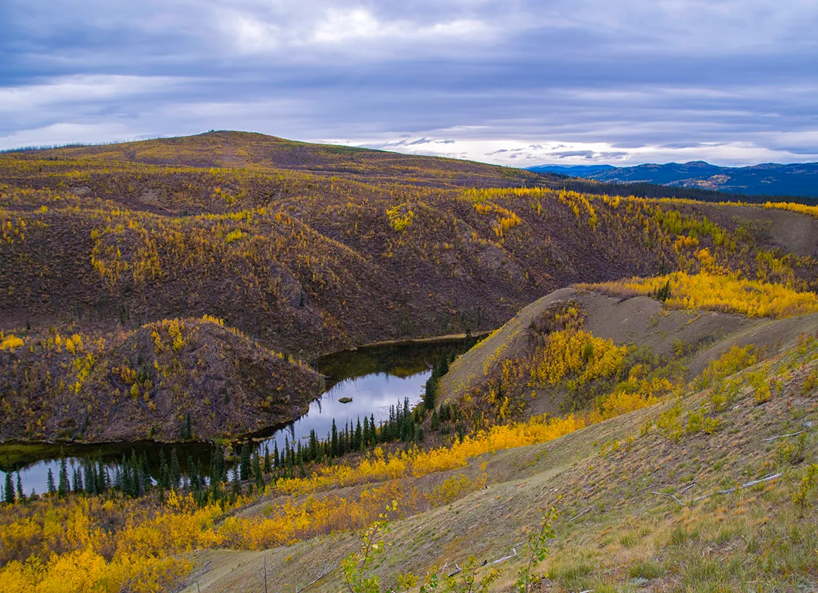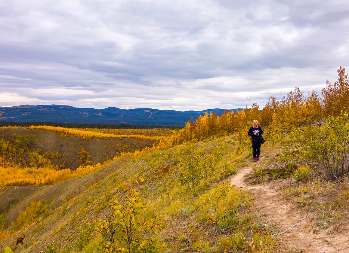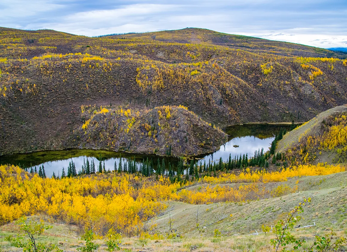 Unsere Fahrt vom Abzweig des Dempster Highways zurück nach Whitehorse war ein Fest für die Augen – strahlend blauer Himmel, knackige Herbstfarben und eine Landschaft, die selbst Postkarten neidisch machen würde. Schon kurz nach dem Start lockten uns die ersten Fotostopps, und wir geben uns der Versuchung nur allzu gerne hin. Gravel Lake spiegelt die goldgelben Bäume im klaren Wasser, und wir verbringen einige Zeit damit, einfach nur zu schauen und zu genießen.
