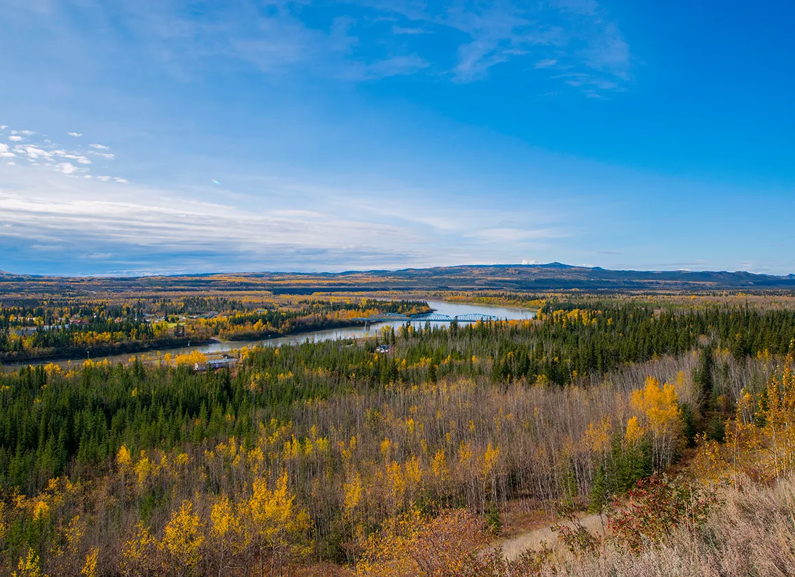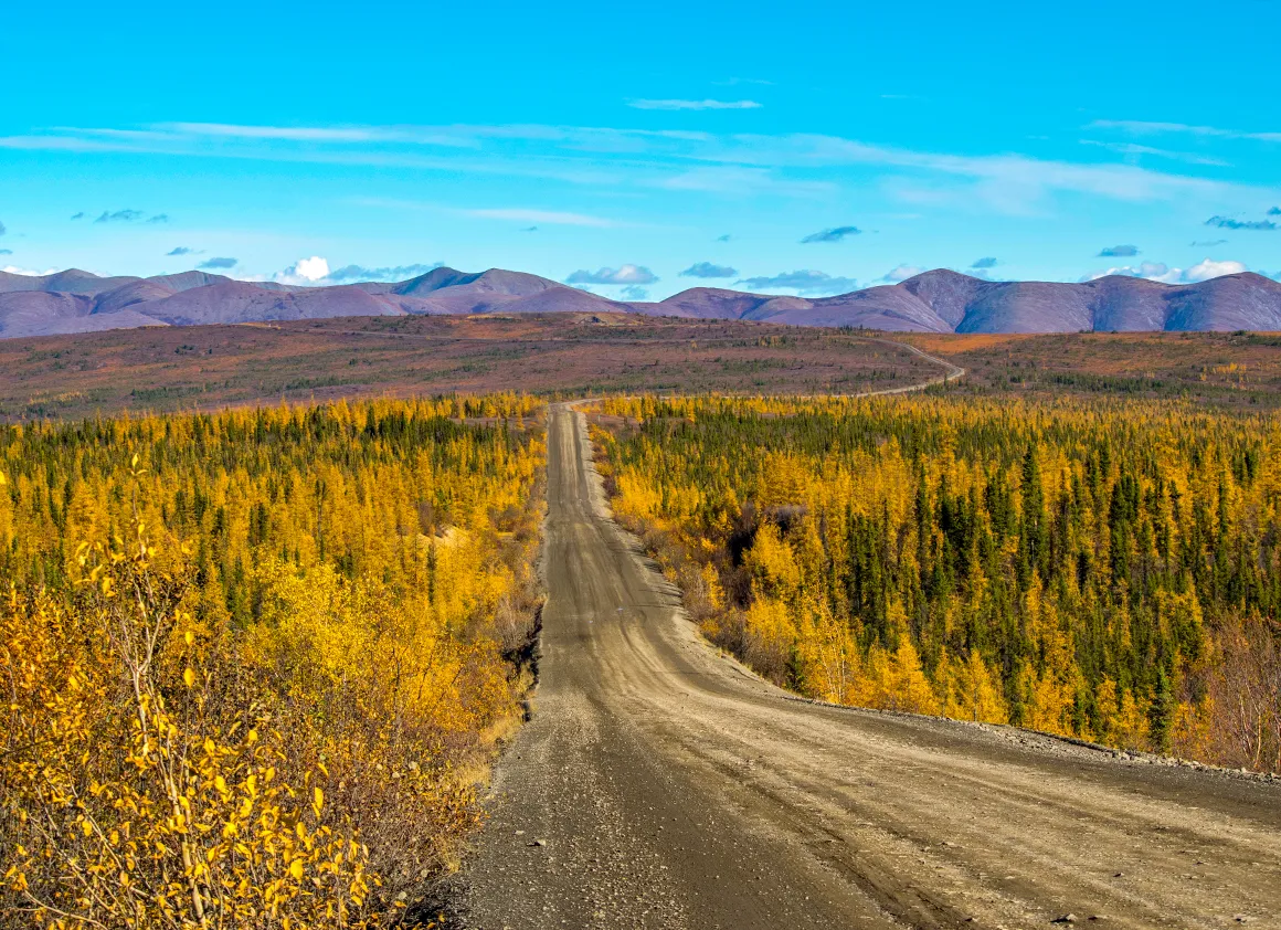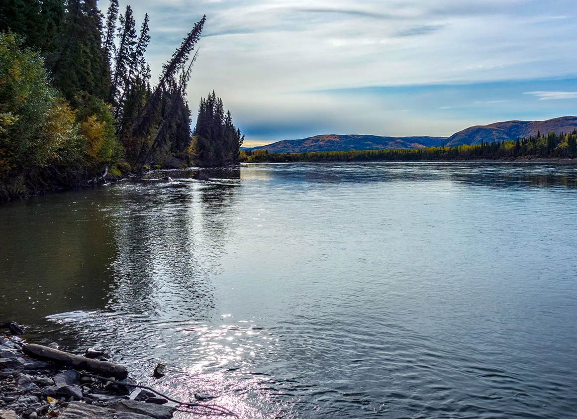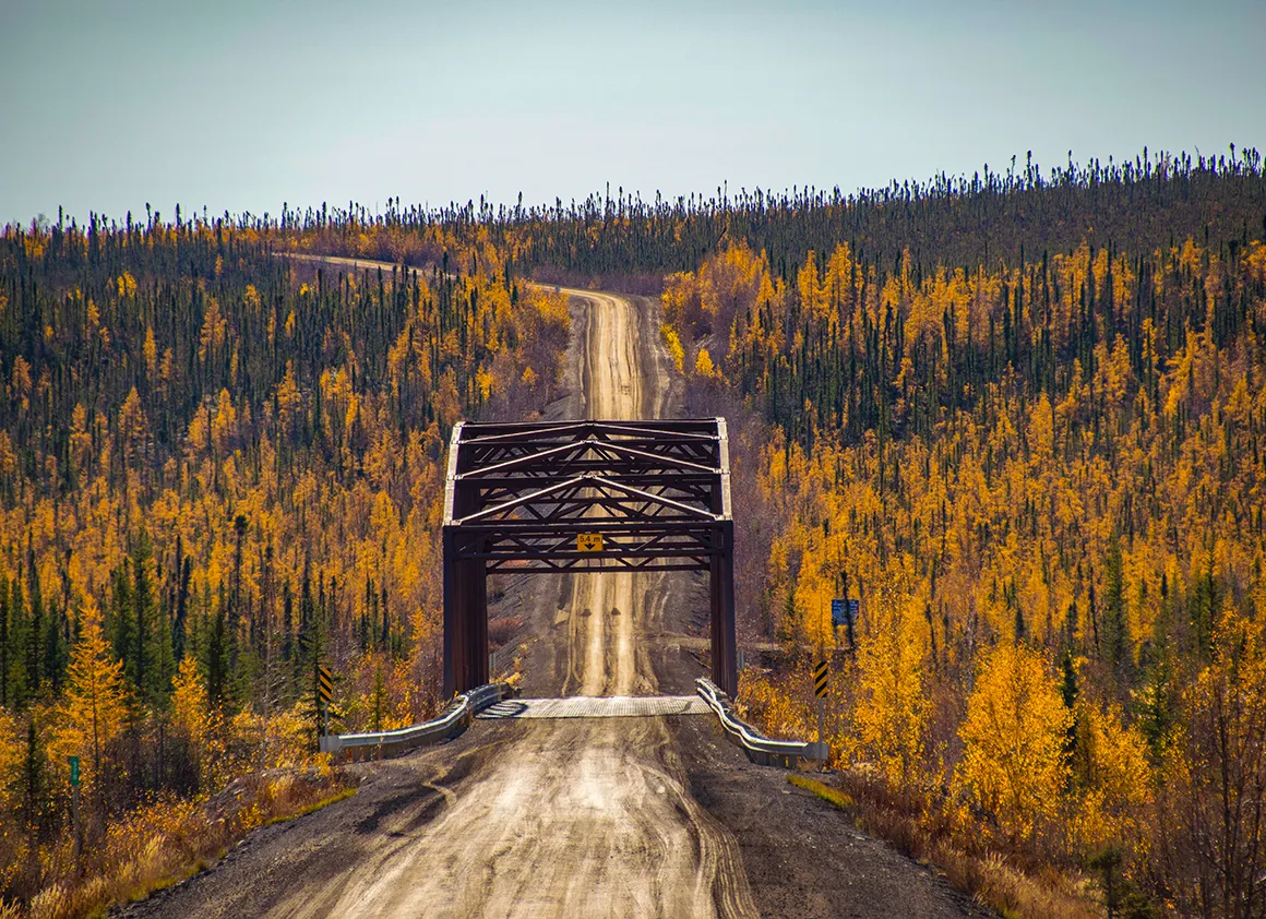 Die letzten Kilometer vor der Brücke am Klondike Highway fühlen sich wie ein sanftes Ausrollen an. Die Landschaft weitet sich, die Farben werden noch einmal kräftiger, und die Sonne spielt ein letztes Mal mit den Konturen der Berge. Punkt 10:00 Uhr rollen wir über die Brücke, die das Ende des Dempster markiert. Ein bisschen Wehmut schwingt mit – dieser Highway war ruppig, fordernd und gnadenlos ehrlich, aber gleichzeitig so wunderschön, dass man ihn nicht vergisst.