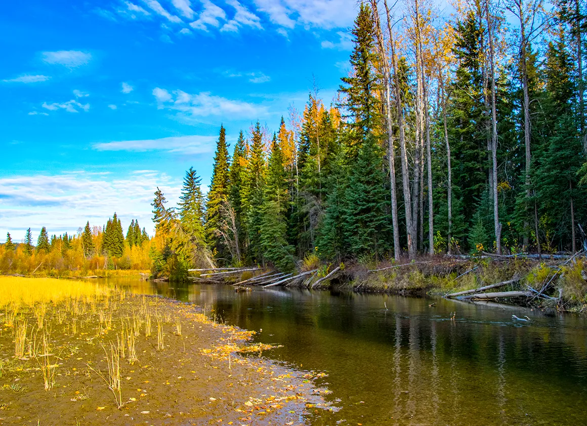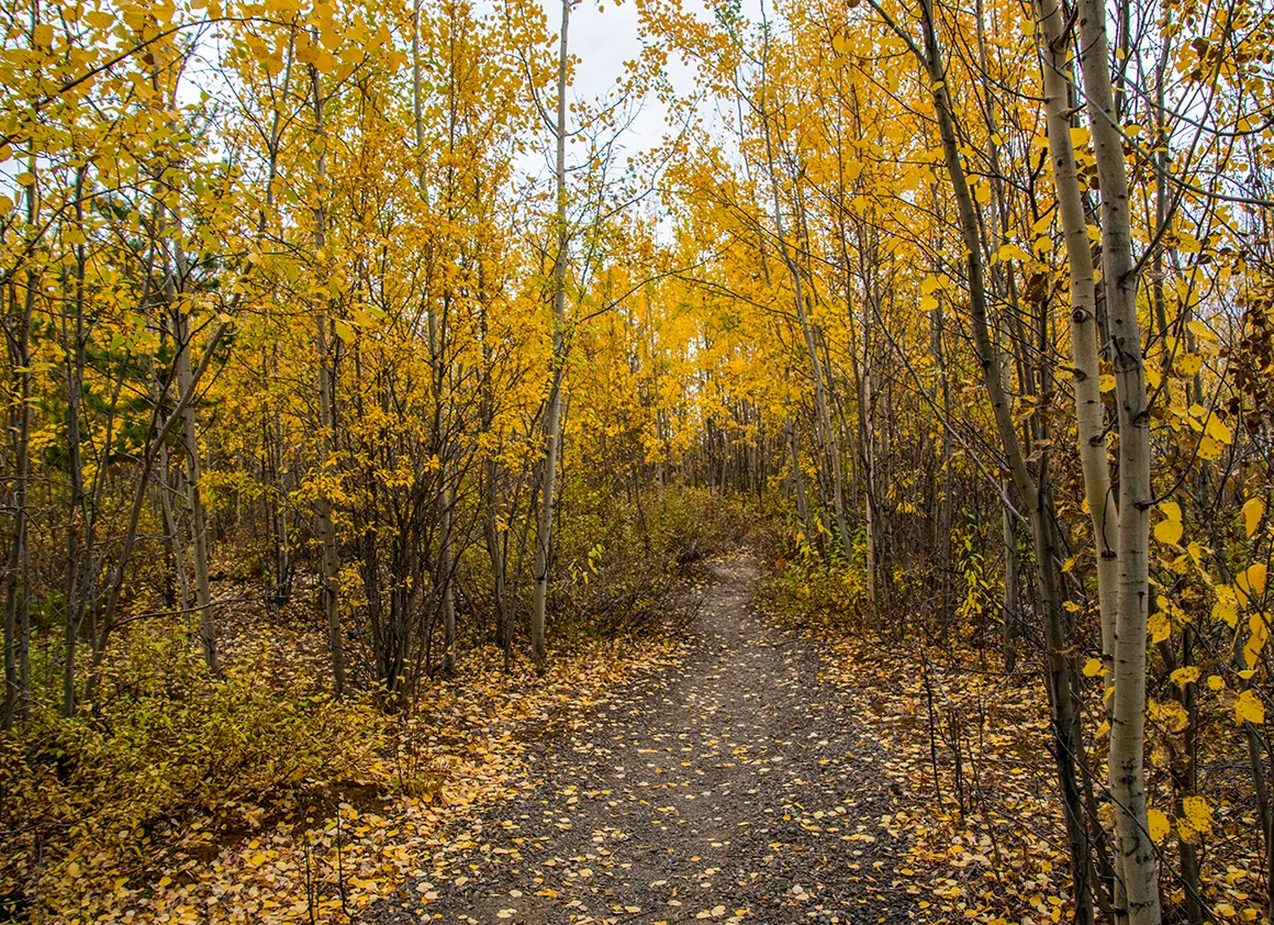 Unser nächster Halt führt uns zum idyllischen Gravel Lake. Der See liegt ruhig in der Landschaft, als hätte ihn jemand mit einer Glasscheibe abgedeckt. Die Oberfläche ist beinahe spiegelglatt, und die herbstlichen Farben der Büsche und Bäume rundherum reflektieren darin wie in einem Gemälde. Wir können es kaum erwarten, die Kameras zu zücken, und schießen Foto um Foto, während die Stille uns umfängt. Für einen Moment vergessen wir die Straße, die vor uns liegt, und genießen einfach nur diese perfekte Kulisse – so ein Ort ist der Inbegriff von Roadtrip-Magie.
