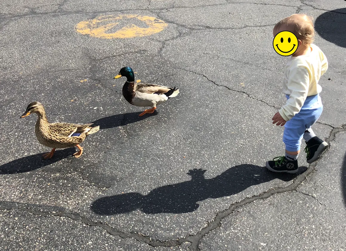 Plötzlich tauchen zwei Enten auf, die gemütlich über den McDonald’s-Parkplatz watscheln, als wäre das hier ihr persönliches Revier. Noah sieht sie – und sein Jagdinstinkt ist geweckt. Mit einem breiten Grinsen nimmt er die Verfolgung auf. Enten vorneweg, Noah hinterher, wackelnde Beinchen, lachendes Kind – eine Szene, die unser Herz einfach nur zum Schmelzen bringt. Natürlich haben die Enten einen leichten Geschwindigkeitvorteil, aber das hält Noah nicht davon ab, ihnen mit voller Entschlossenheit zu folgen. Auch wenn der Plan nicht ganz aufgeht, gibt es am Ende zwei glückliche Enten und ein glückliches Kleinkind.