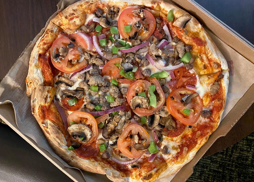 Und dann – wie ein kulinarischer Heiligenschein –  leuchtet auf der anderen Straßenseite das Schild von MOD Pizza. OPEN.  Es ist, als hätte uns der Pizza-Gott ein Zeichen geschickt. Wir zögern keine Sekunde.  Pizza rettet immer.