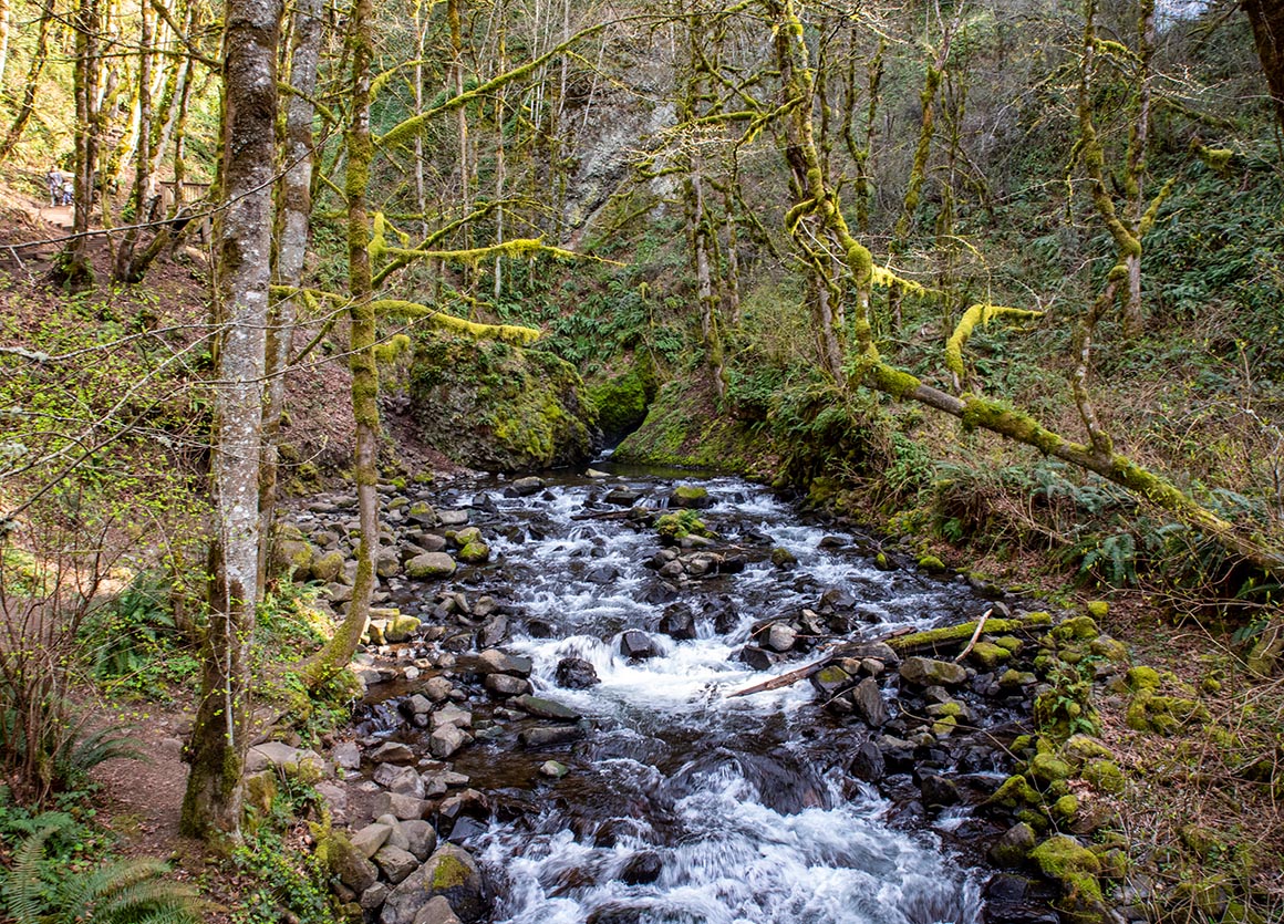 Als wir schließlich den Rückweg zum Auto antreten, geben wir die Lücke frei – mit dem beruhigenden Gefühl, dass sich das Warten für die Nächsten auch lohnen wird. Doch natürlich war das noch lange nicht alles, was die Gorge zu bieten hat.  Nächster Halt: Bridal Veil Falls.
