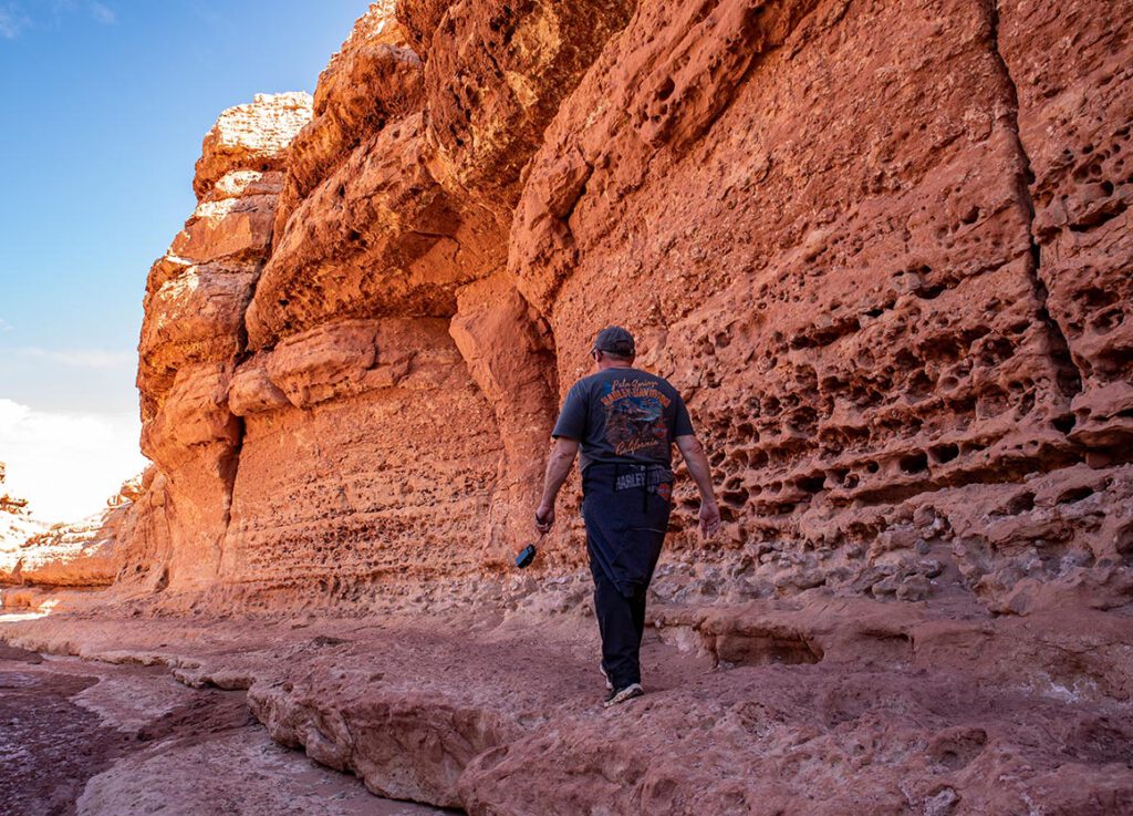 Drei Stunden  verlieren wir uns in diesem wilden, farbigen Wunderland – ohne auf die Uhr zu schauen, ohne an Essen zu denken. (Ein echter Indikator dafür, wie schön es ist.) Als wir irgendwann aufs Handy gucken, stellen wir fest: Ups, halber Tag weg. Und der eigentlich geplante Sidestep Canyon? Liegt irgendwo direkt nebenan. Haben wir vergessen. Aber ehrlich gesagt – war völlig okay so. Was für ein Tag bisher. Und dabei ist er noch nicht mal vorbei.