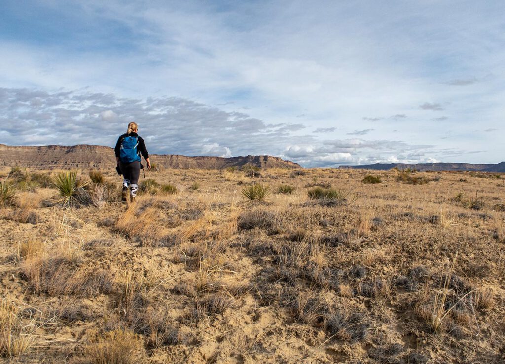 Jetzt kann’s losgehen. Der Trail beginnt harmlos.  Ein schmaler Pfad, ein sanfter Anstieg, ein paar störrische Wüstenbüsche. Karg, still, völlig unspektakulär.  Stefan schaut skeptisch. Ich auch. Canyon? Wo? Noch sieht’s eher nach „verpasstem Abzweig“ aus als nach Naturwunder.