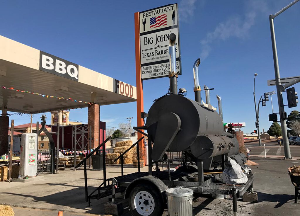 Die Lösung:  Arizona ignoriert die Sommerzeit. Obwohl wir geografisch in der Mountain Time Zone bleiben,  springen wir mit einem Bein in die Vergangenheit. Zeitreisen sind möglich. Und offenbar auch hungrig. Unser Ziel ist klar:  Big John’s Texas BBQ. Schon beim letzten Besuch war klar –  wir kommen wieder. Der Geruch von gegrilltem Fleisch hängt wie ein Versprechen in der Luft. Also rein, wieder Platz genommen auf der überdachten Terrasse –  Picknickbank, rote Saucenflaschen, Countrymusik.
