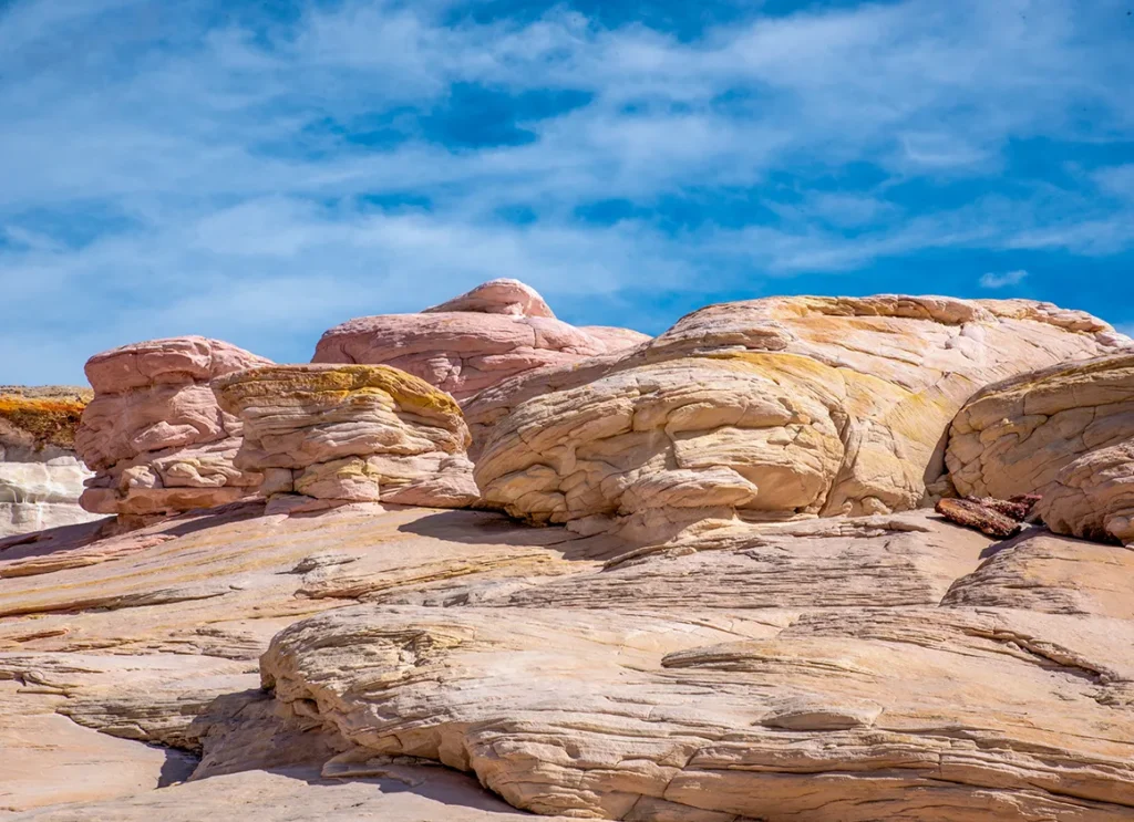 Je näher wir kommen, desto unglaublicher wird’s.  Kunstvolle Linien, geschwungene Formen, Farben wie mit der Spritzpistole aufgetragen. Diese Felsen wirken nicht geologisch, sondern dekorativ. Man möchte fast fragen, ob es irgendwo einen Künstler gibt, der das hier alles am Computer modelliert hat. Und ja – Utah, du alte Trickserin – wir dachten, wir kennen dich. Aber du haust uns immer wieder aus den Wanderschuhen.