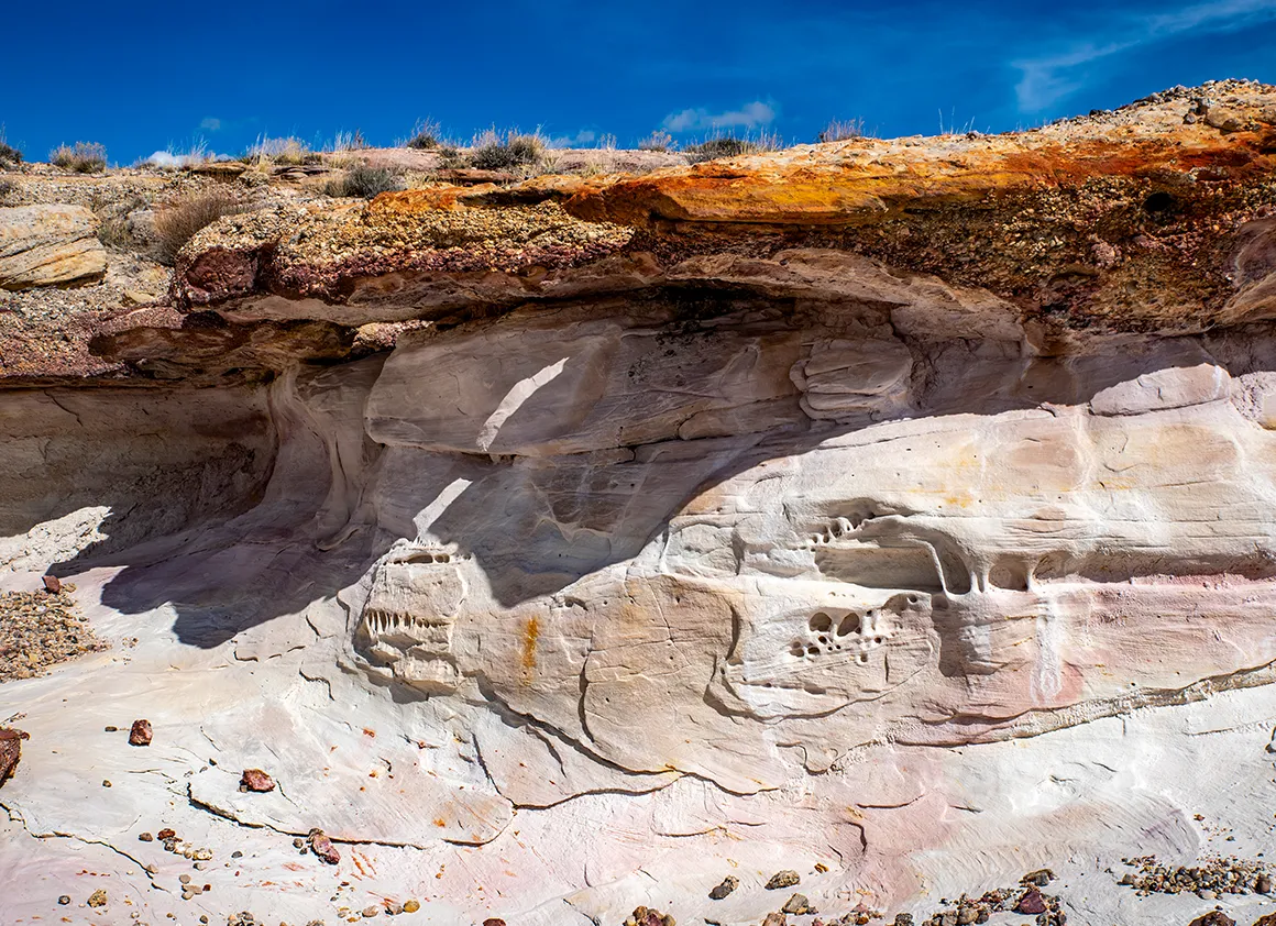 Drei Stunden  verlieren wir uns in diesem wilden, farbigen Wunderland – ohne auf die Uhr zu schauen, ohne an Essen zu denken. (Ein echter Indikator dafür, wie schön es ist.) Als wir irgendwann aufs Handy gucken, stellen wir fest: Ups, halber Tag weg. Und der eigentlich geplante Sidestep Canyon? Liegt irgendwo direkt nebenan. Haben wir vergessen. Aber ehrlich gesagt – war völlig okay so. Was für ein Tag bisher. Und dabei ist er noch nicht mal vorbei.