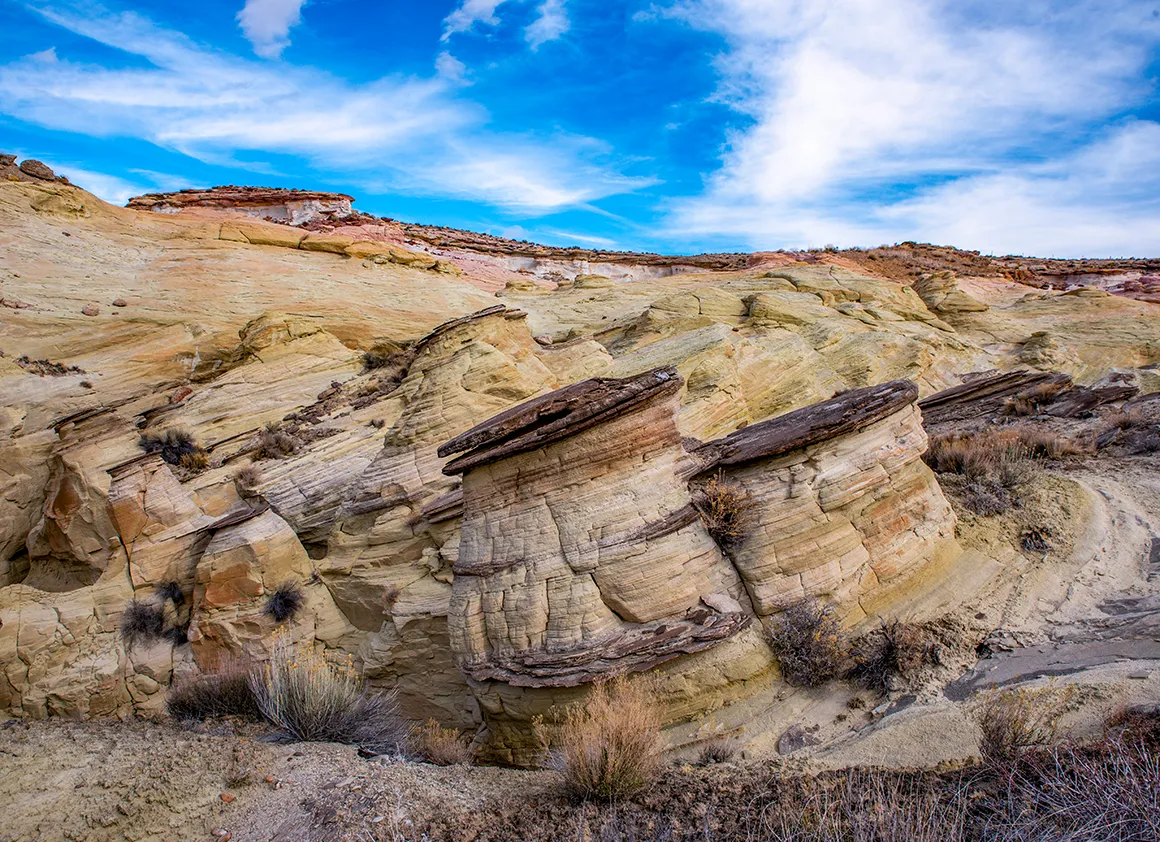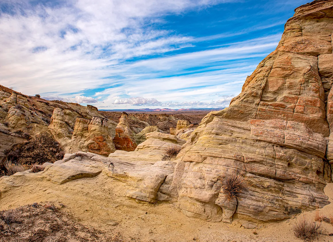 Wie bitte hat die Natur das hier hingekriegt – und warum steht das nicht in jedem Reiseführer in Großbuchstaben auf Seite 1? Langsam steigen wir den Abhang hinunter. Vorsichtig, Schritt für Schritt –  nicht nur wegen der Kamera, sondern auch wegen der knirschenden Knie. Der Sandstein unter unseren Füßen wirkt fast zerbrechlich , als hätte jemand eine Sahnetorte zu lange in der Sonne stehen lassen –  aber in schön.