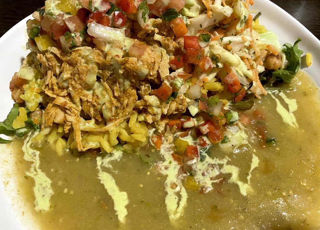Aber dann der erste Bissen – und plötzlich ist alles egal. Zart geschmort, würzig, überraschend lecker.  Die grüne Sauce bringt genau die richtige Mischung aus Säure, Schärfe und Frische mit –  eine echte Geschmacksexplosion , die das Auge großzügig übergehen lässt.